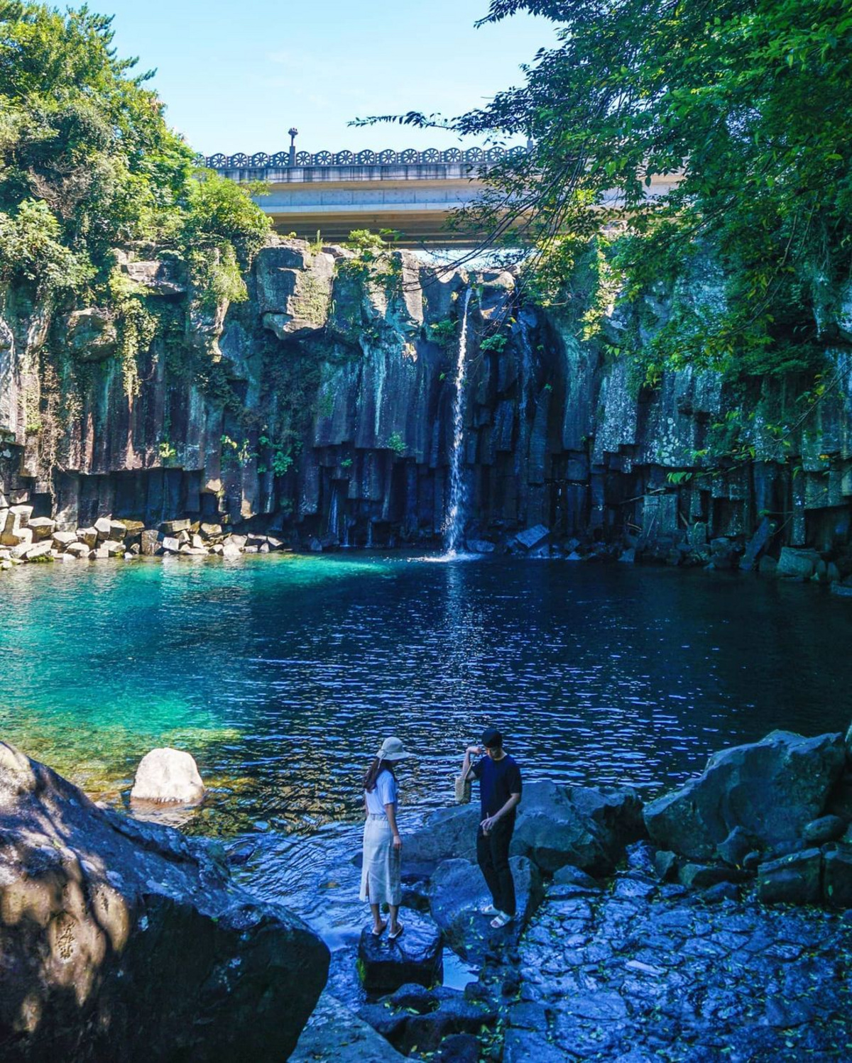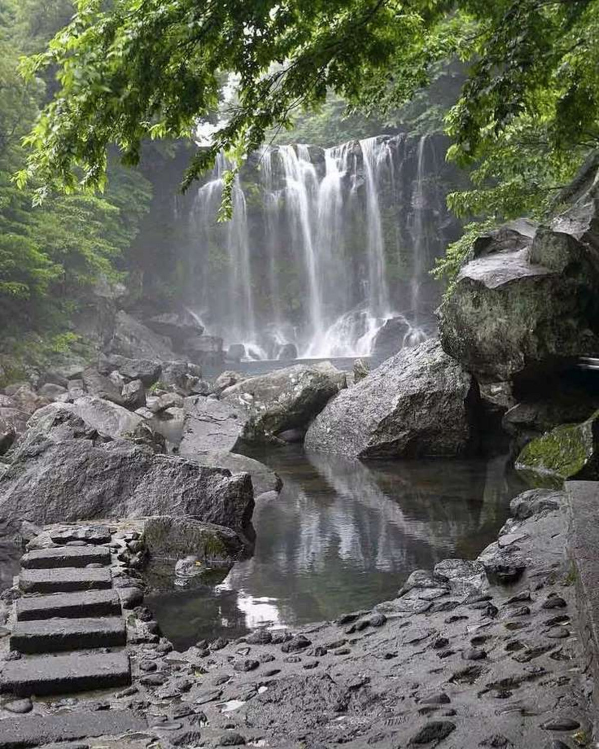 Невероятно красивое место, в котором три водопада образуют каскад. Известно оно своими легендами о нимфах, в честь которых и названы водопады. Вода используется в лекарственных целях, так как вытекает из каменистой почвы и содержит в себе множество полезных минералов. Вход в парк платный — 5000 вон (примерно 315 рублей). Находится место в Согвипхо, добраться до туда можно из Чеджу на автобусе и ехать придется до остановки «Ботанический сад Емиджи»
