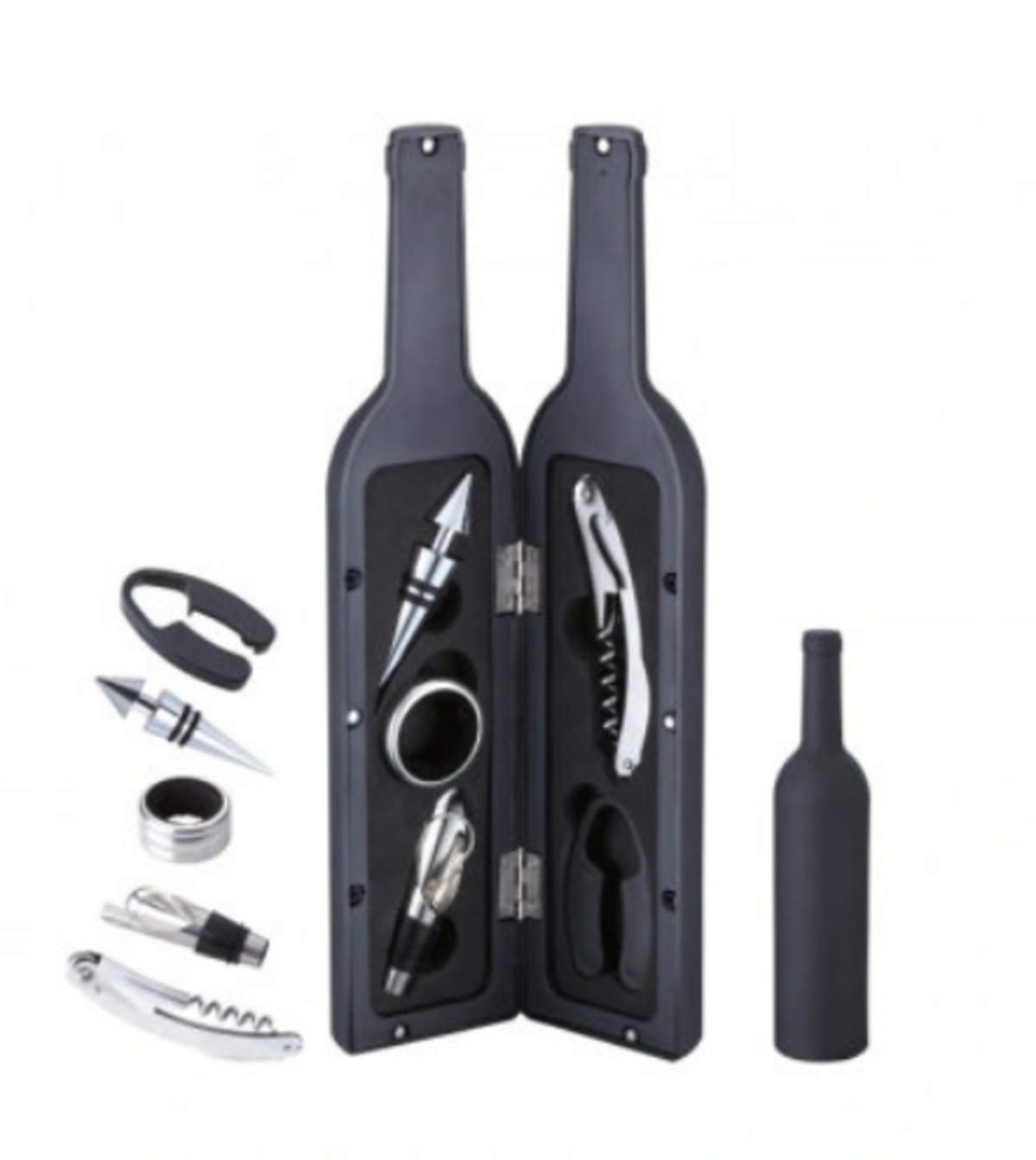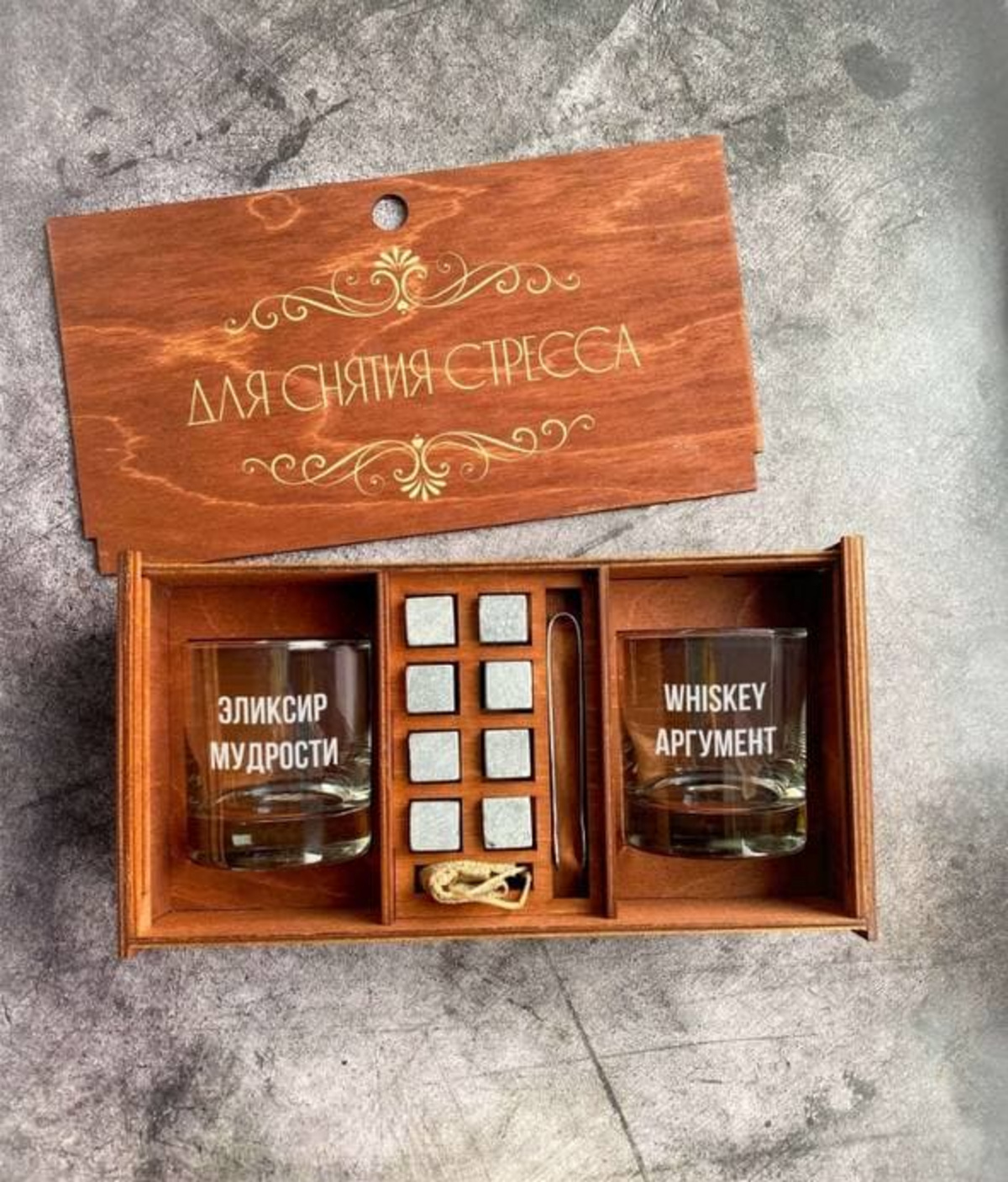 Набор аксессуаров для алкоголя придется по вкусу настоящим ценителям. Для любителей благородных напитков предлагают комплекты с охлаждающими кубиками, щипцами и стаканами, а также штопорами, воротничками на бутылку, пробками и устройствами для аккуратного розлива вина и срезания фольги.