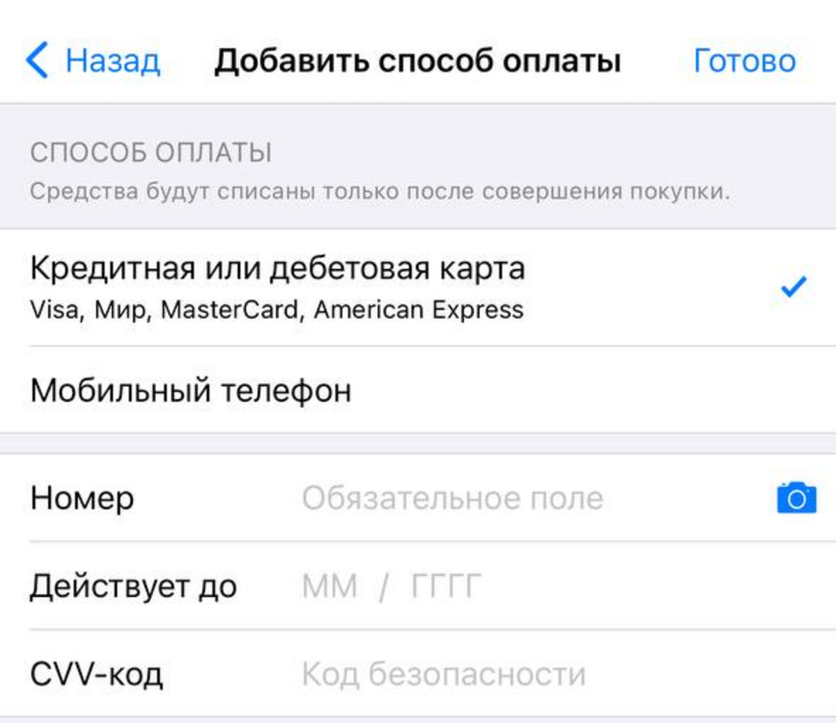 «На сайте среди способов оплаты в учетной записи Apple ID значится следующий список: Apple Pay, большинство кредитных и дебетовых карт, счет мобильного телефона через поддерживаемых операторов, остаток на счете Apple ID от погашения подарочных карт App Store и iTunes или внесения средств и карты платежной системы «Мир», — уточняет ТАСС.