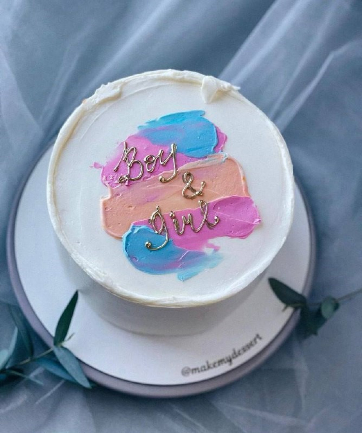 Внешне торт выглядит обычно, но сюрприз спрятан внутри. В зависимости от пола ребенка, кондитер делает голубую или розовую начинку.