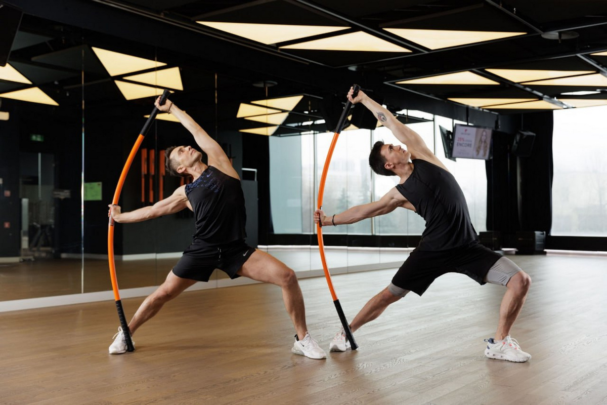 Тренировка проходит с использованием специального оборудования Stick Mobility для улучшения диапазона движений, активации мышц, координации и осознания тела для создания прочной основы для лучшего движения.