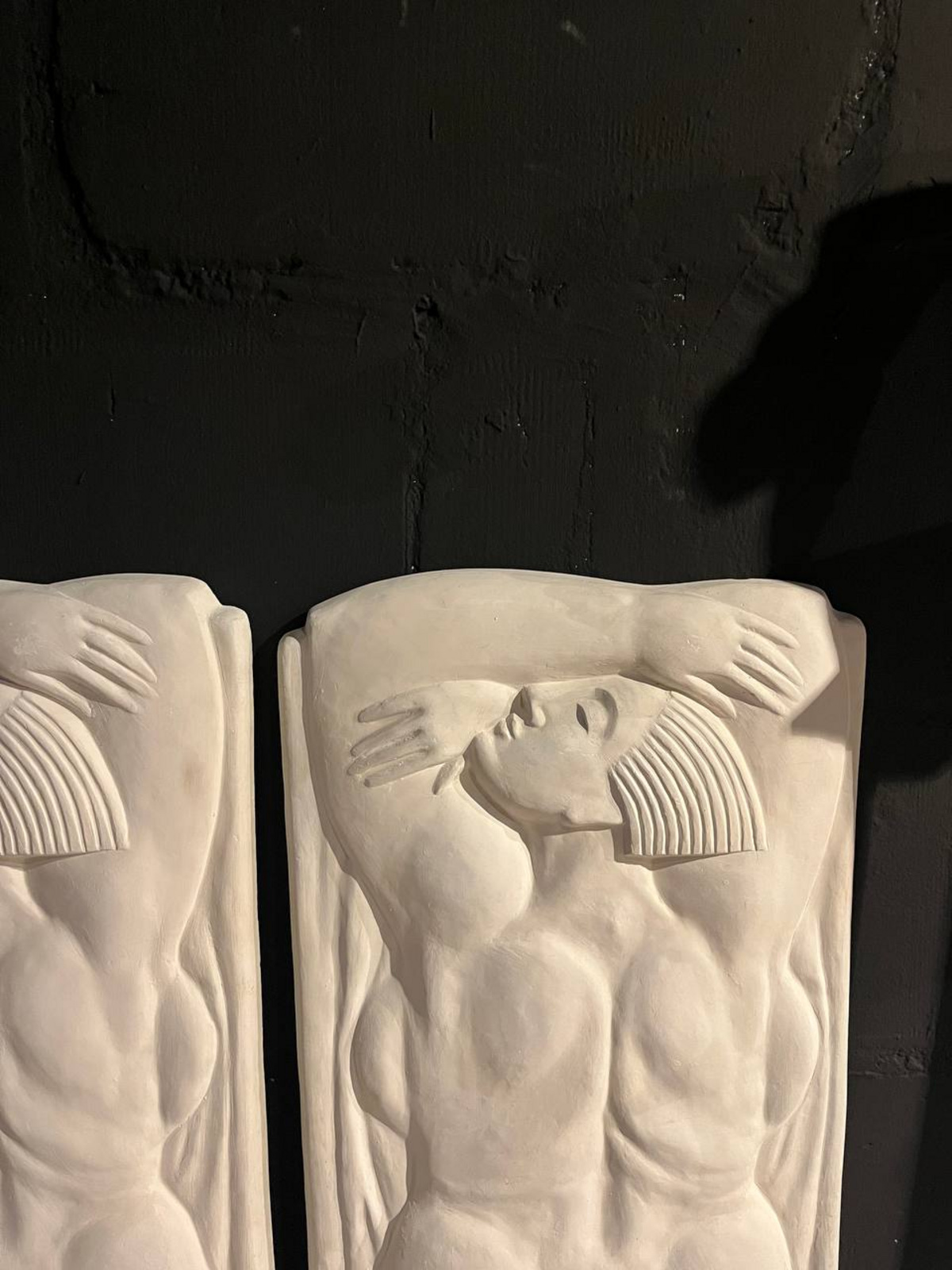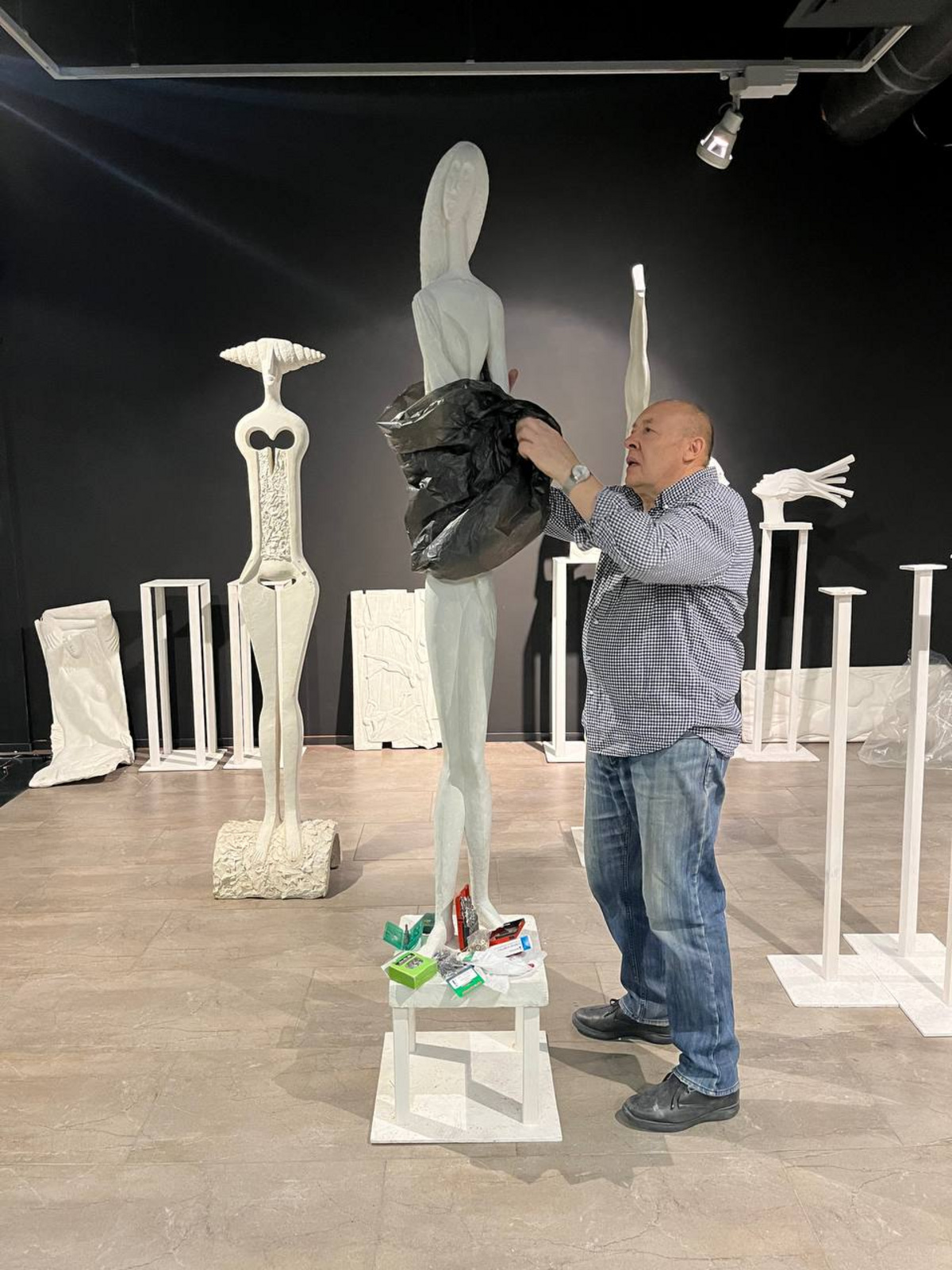 — Некоторые из представленных гипсовых отливок переведены в бронзу, нержавеющую сталь, алюминий, дерево и украшают общественные и частные пространства. А другие остались в гипсе, как рабочий материал. Мастерские скульпторов обычно заполнены многочисленными эскизами и моделями своих работ в гипсе. Это самый удобный материал, в котором можно зафиксировать пластическое решение идеи — рассказал «Моментам» Андрей Чернышев.