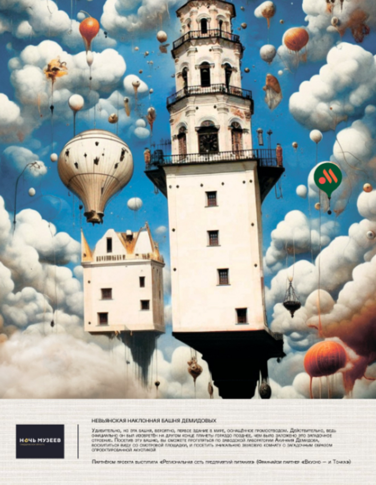 К «Ночи музеев — 2024» сеть быстрого питания «Вкусно — и точка» подготовила для жителей Екатеринбурга необычный квест. В городских музеях разместят картины, созданные художником с помощью искусственного интеллекта. На них будут изображены культурные и архитектурные символы Свердловской области, а также спрятаны позиции из меню бывшего McDonald’s.
