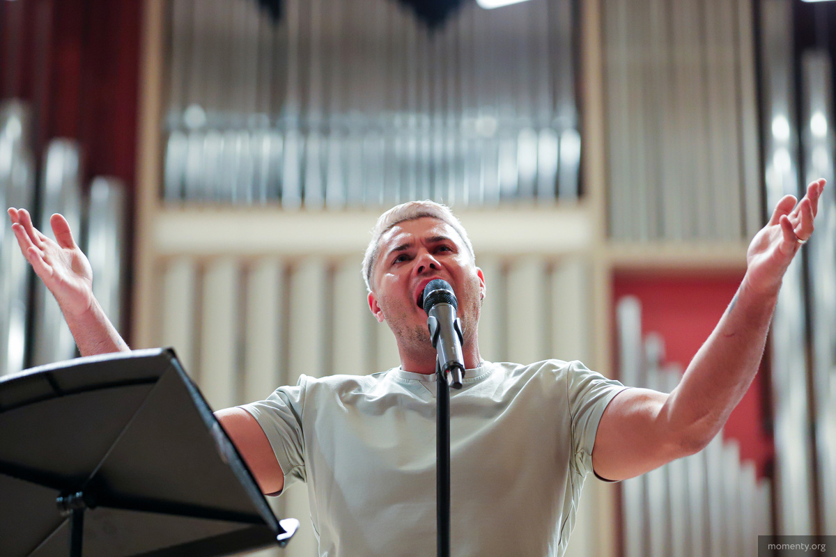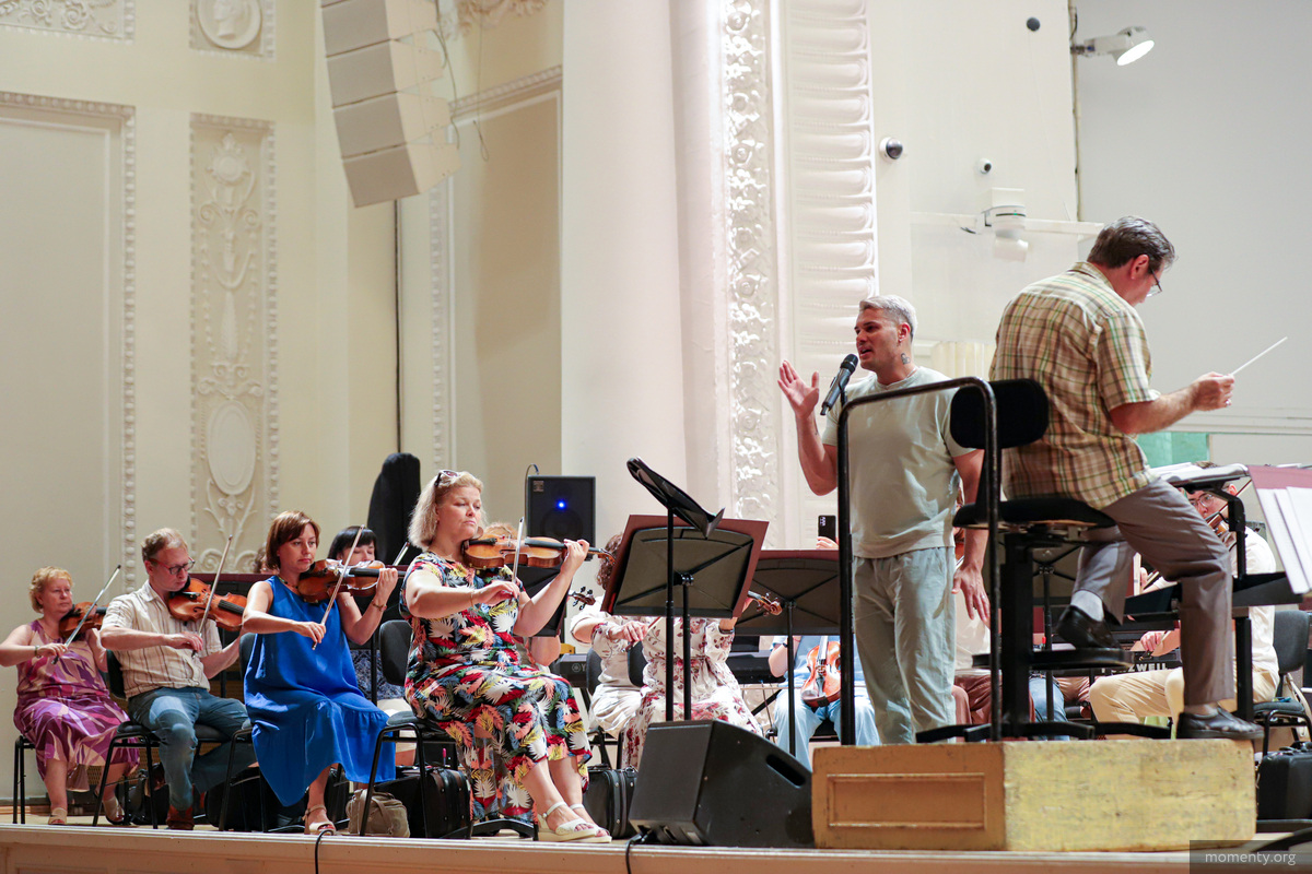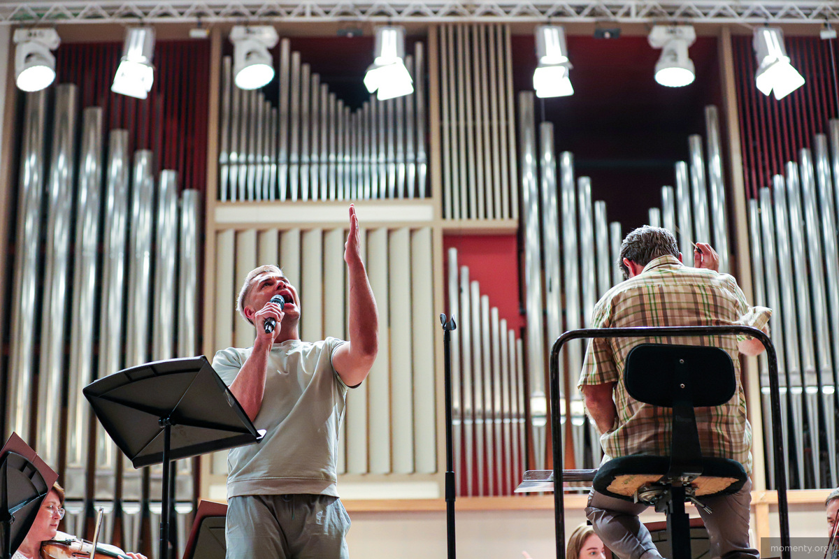 — Состав не совсем для нас обычный: мы используем клавишные инструменты в большом количестве, электронные — бас-гитару, ударную установку. Много чего, действительно, нестандартного в этих программах есть, — рассказал «Моментам» дирижер Алесей Доркин.