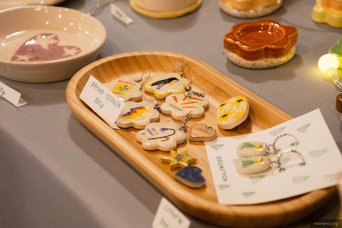 — На ярмарке можно купить новогодние подарки, сладости, керамику, украшения, елочные игрушки, декор, натуральную косметику, свечи ручной работы. Например, представлены игрушки из ваты, пряники с иллюстрациями, конфеты из бельгийского шоколада, дизайнерские свечи в форме мандаринок и многое другое, — рассказали «Моментам» организаторы.