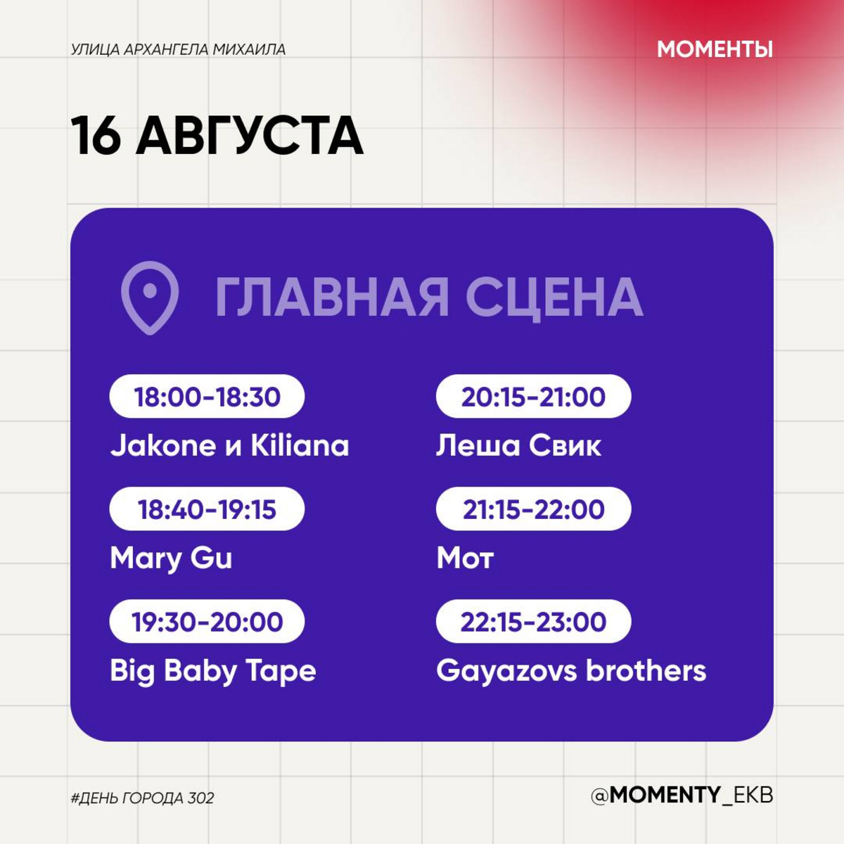 Екатеринбург готовится отпраздновать 302 года — отмечать день рождения город будет в эту субботу, 16 августа. Центром торжества станет фестиваль «Энергия РМК» с насыщенной программой: от концертов звезд до экстремальных видов спорта.