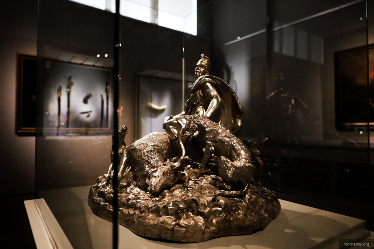 Почти 200 экспонатов показывают развитие темы охоты в оружии, живописи и декоративно-прикладном искусстве. Особое внимание уделено эволюции средств для этого занятия на протяжении веков.