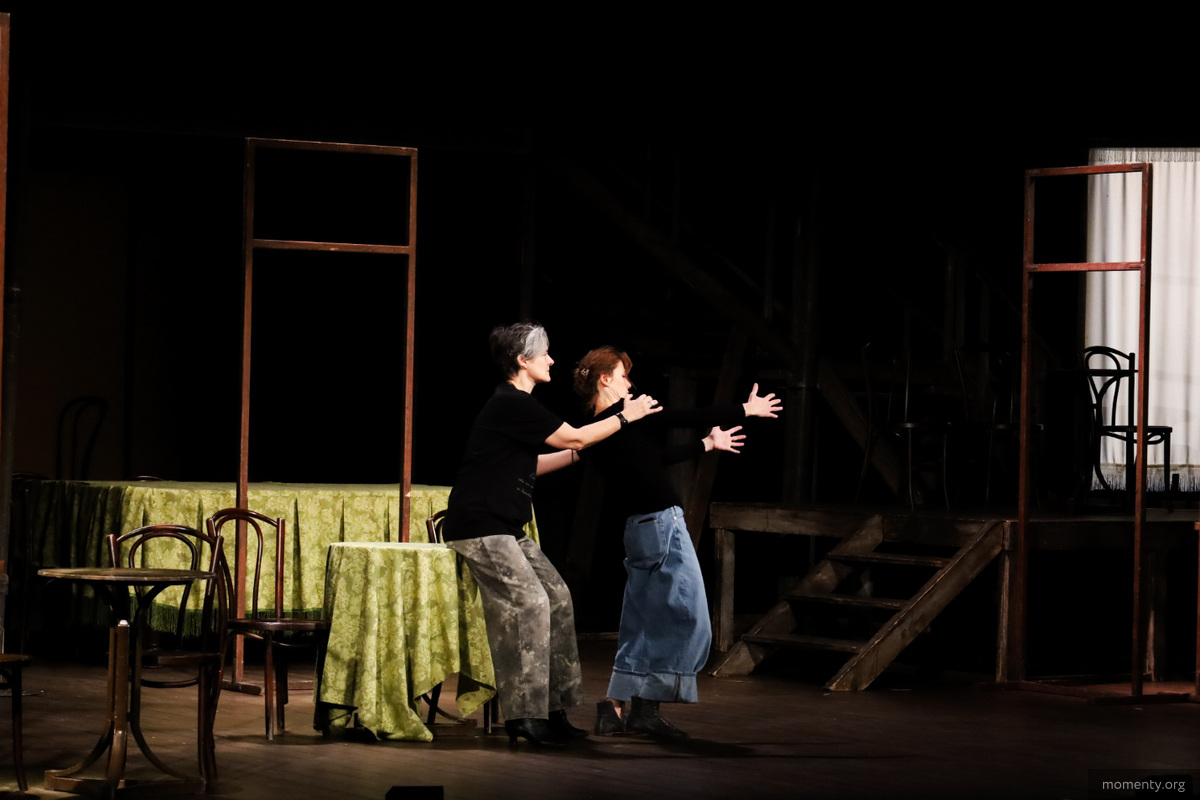 — Художник Владимир Максимов, который сделал множество спектаклей с Петром Фоменко, совместно работал над этими декорациями. Я бы не стал называть это, конечно, золотым сечением, но у режиссера не было цели удивлять, он хотел рассказать историю. В том числе и с помощью таких деталей, — объяснил задумку «Моментам» актер Евгений Цыганов.