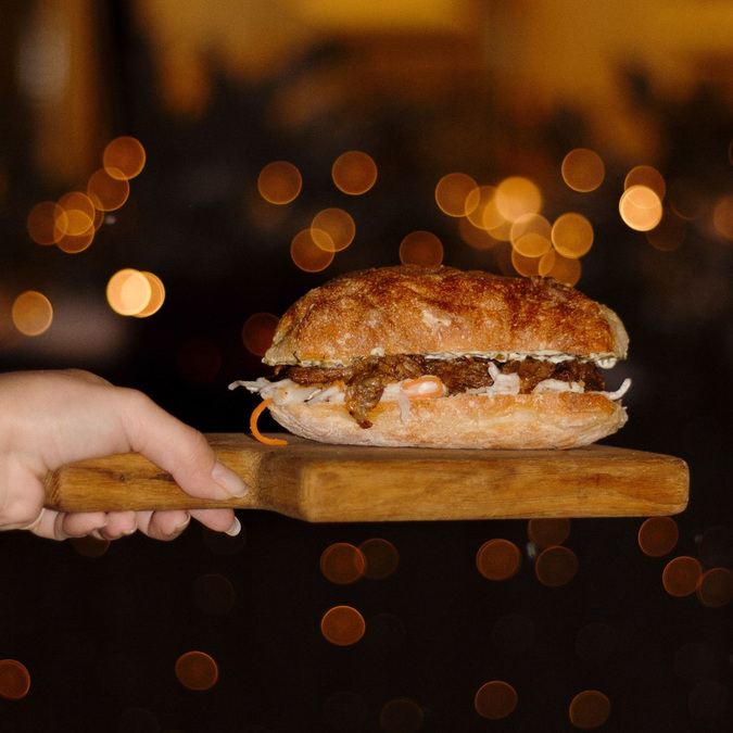 — Сэндвич с говяжьим ребром с квашеной капустой и соусом из черемши;