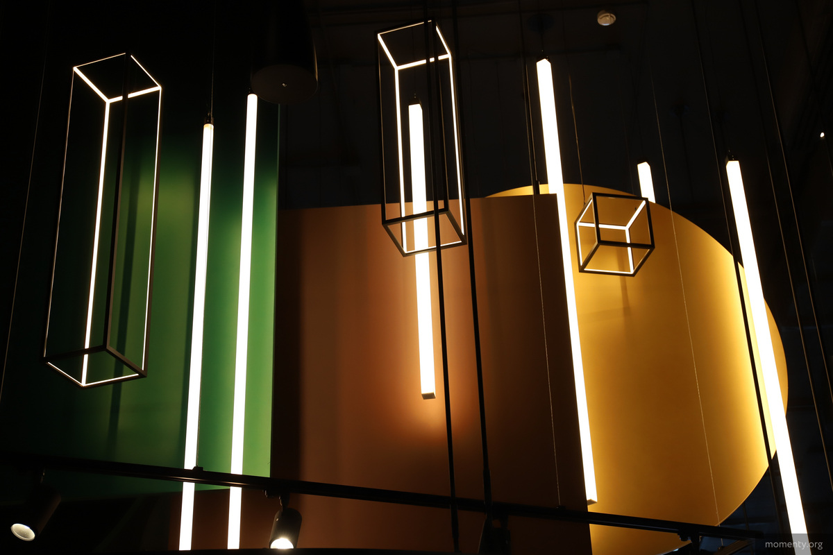 «В центре двусветного лобби мы разместили бар с арт-инсталляцией. Световые кубы и ломаные линии композиции сразу дают гостям представление о стилистике отеля. Пол также пронизан геометрией, а мебель в лаунж-зоне — специально лаконичная, смягчающая общий вид», — описали работу дизайнеры на странице Facebook*.