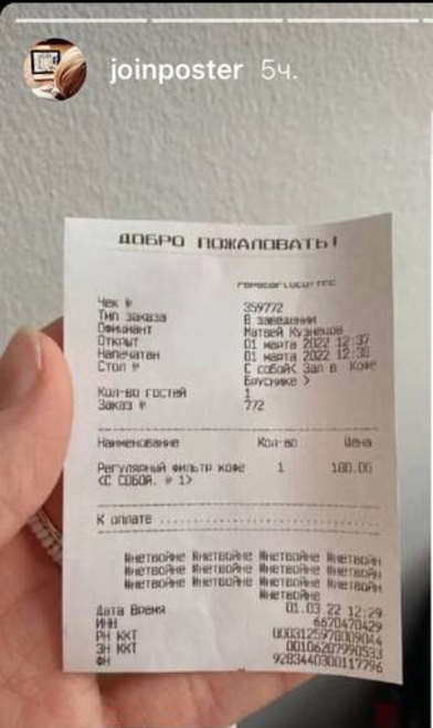 Несколько российских кофеен и ресторанов заметили на фискальных чеках антивоенные лозунги. Все потому, что они пользовались украинской системой Poster POS для учета и систематизации. В Екатеринбурге со взломом системы столкнулась сеть кофеен Papa Carlo и ресторан Gege.