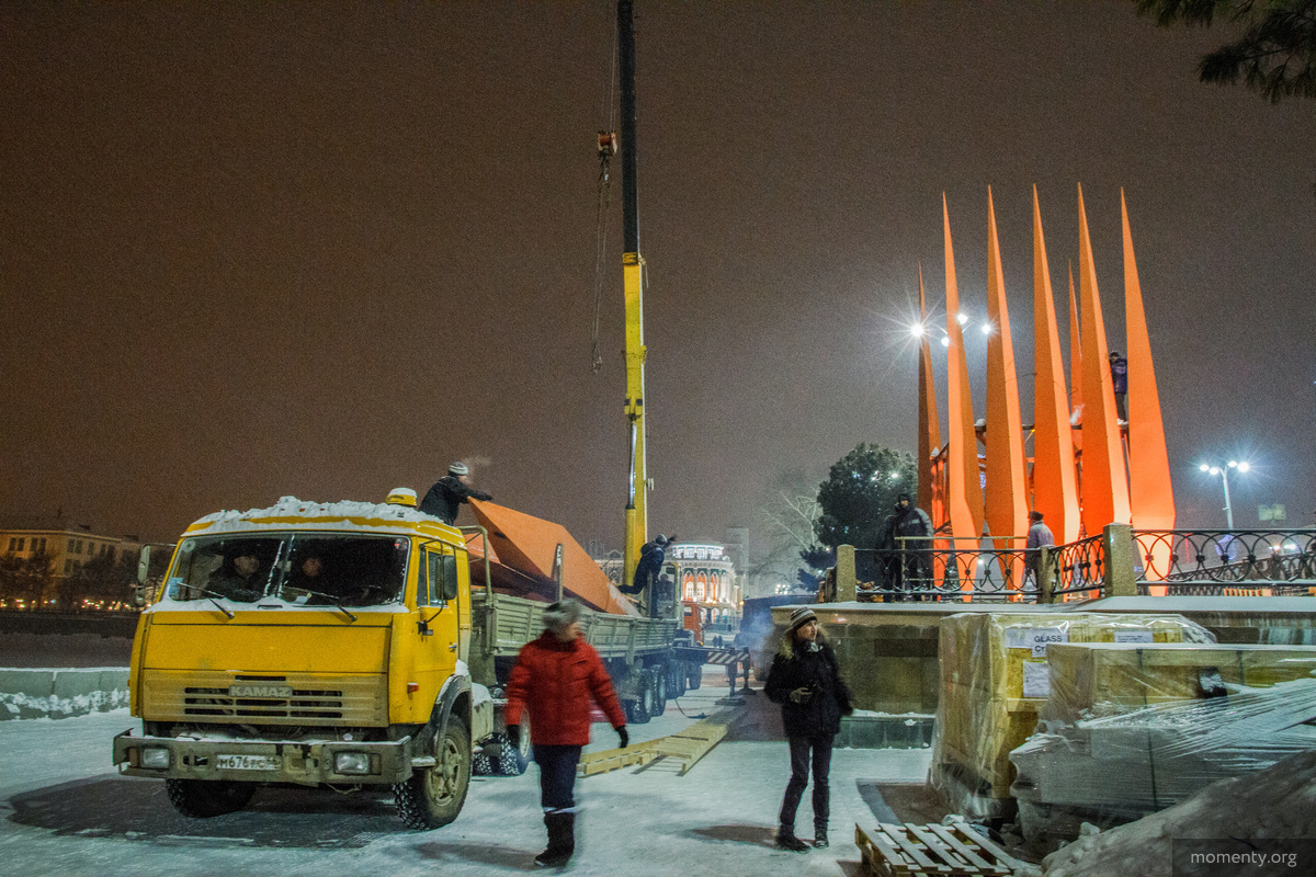 На место Краснознаменной группы, которую хотят вернуть на Плотинку, у уральских архитекторов есть свои планы. По их мнению, Екатеринбург больше нуждается в актуальном арт-объекте. Один из таких был задуман в концепции благоустройства набережной Городского пруда.