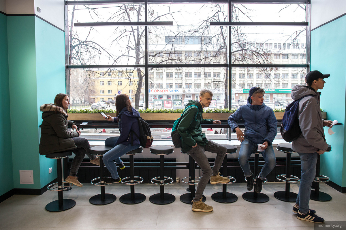 Одно из популярных мест для встреч — ресторан IKEA в «МЕГЕ». Постоянные гости рассказывают, что раньше сюда приходила публика постарше и с низким уровнем доходов. Сегодня школьники лет 15-16 собираются компаниями, освежают в стаканчиках кофе или газированные напитки, на которые не действуют ограничения, и подключают к сети свои ноутбуки. Могут проводить в кафе часами.