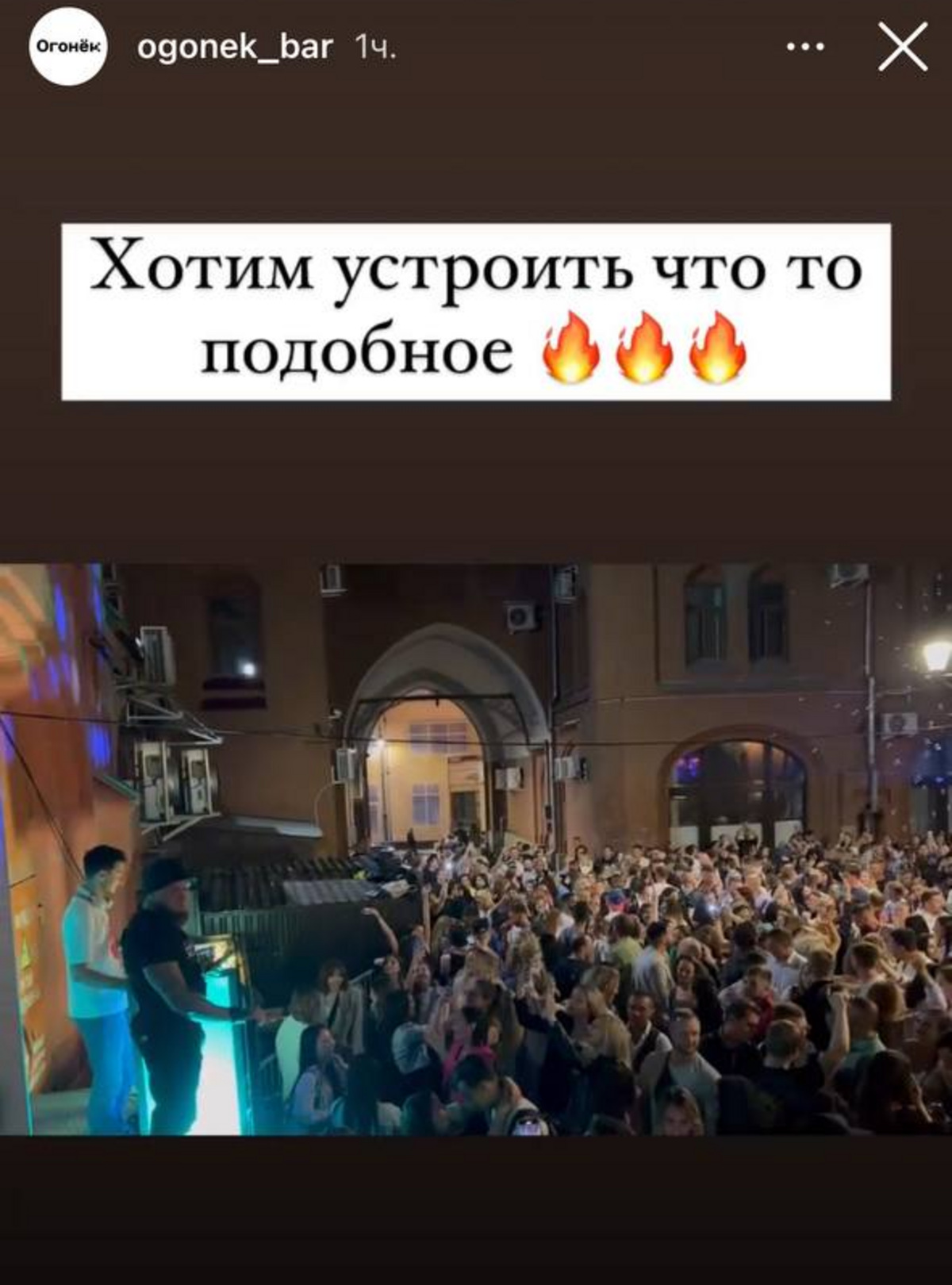 — Периодичность таких тусовок будет зависеть от погоды. Начинает пробовать новый формат с заходом на будущее, — рассказал «Моментам» арт-директор бара «Огонек» Егор Панин.