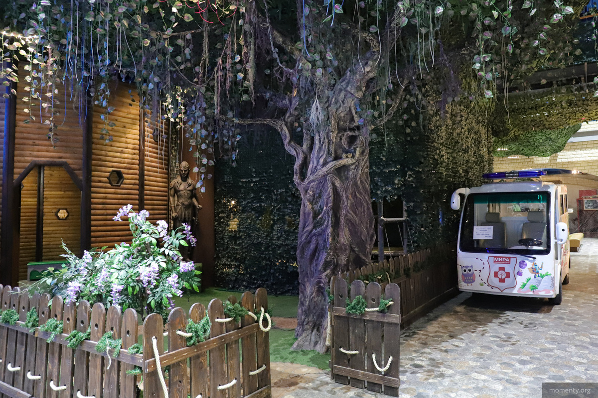 Также здесь расположена яркая детская зона (0+) с батутом, качелями, горкой и другими безопасными для малышей аттракционами. На площадке установлен самый большой в Екатеринбурге пятиэтажный лабиринт с препятствиями.