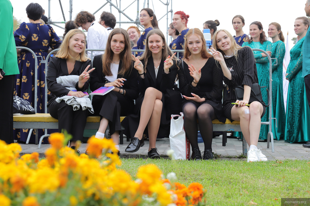 — Самому молодому первокурснику 15 лет, а самому старшему 64 года. Самые распространенные имена — Александр и Анастасия. Среди первокурсников в этом году получилось больше мужчин, их 53 процента, — рассказал ведущий.