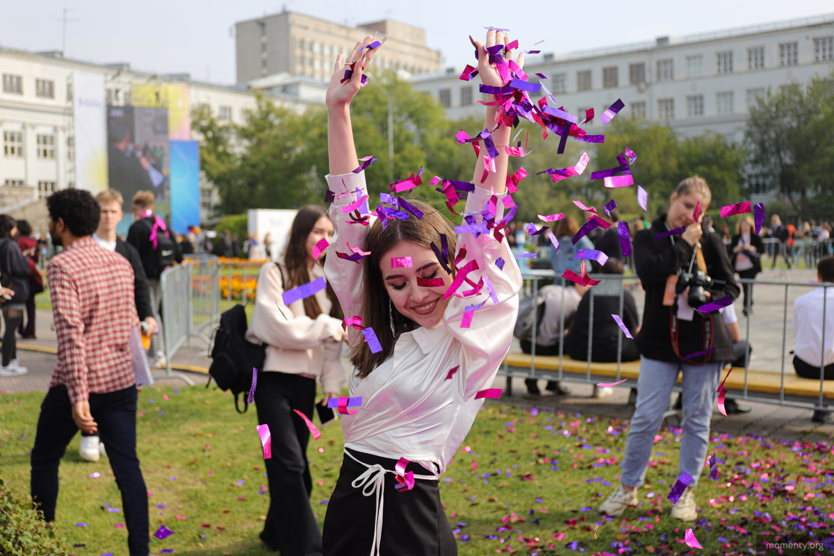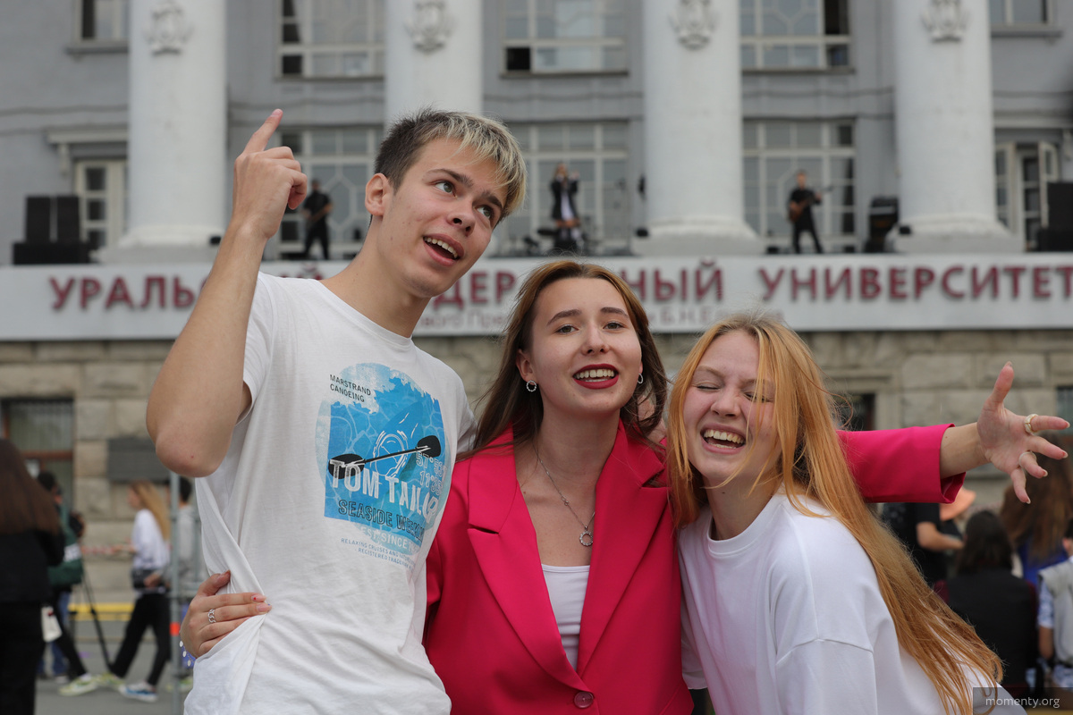 Каждый студент во время праздника мог засветиться на большом экране у главного корпуса УрФУ. В прямом эфире они передавали привет родителям и рассказывали, на что будут тратить первую стипендию. Даже брутальные бородатые первокурсники танцевали и посылали воздушные поцелуи с экранов.