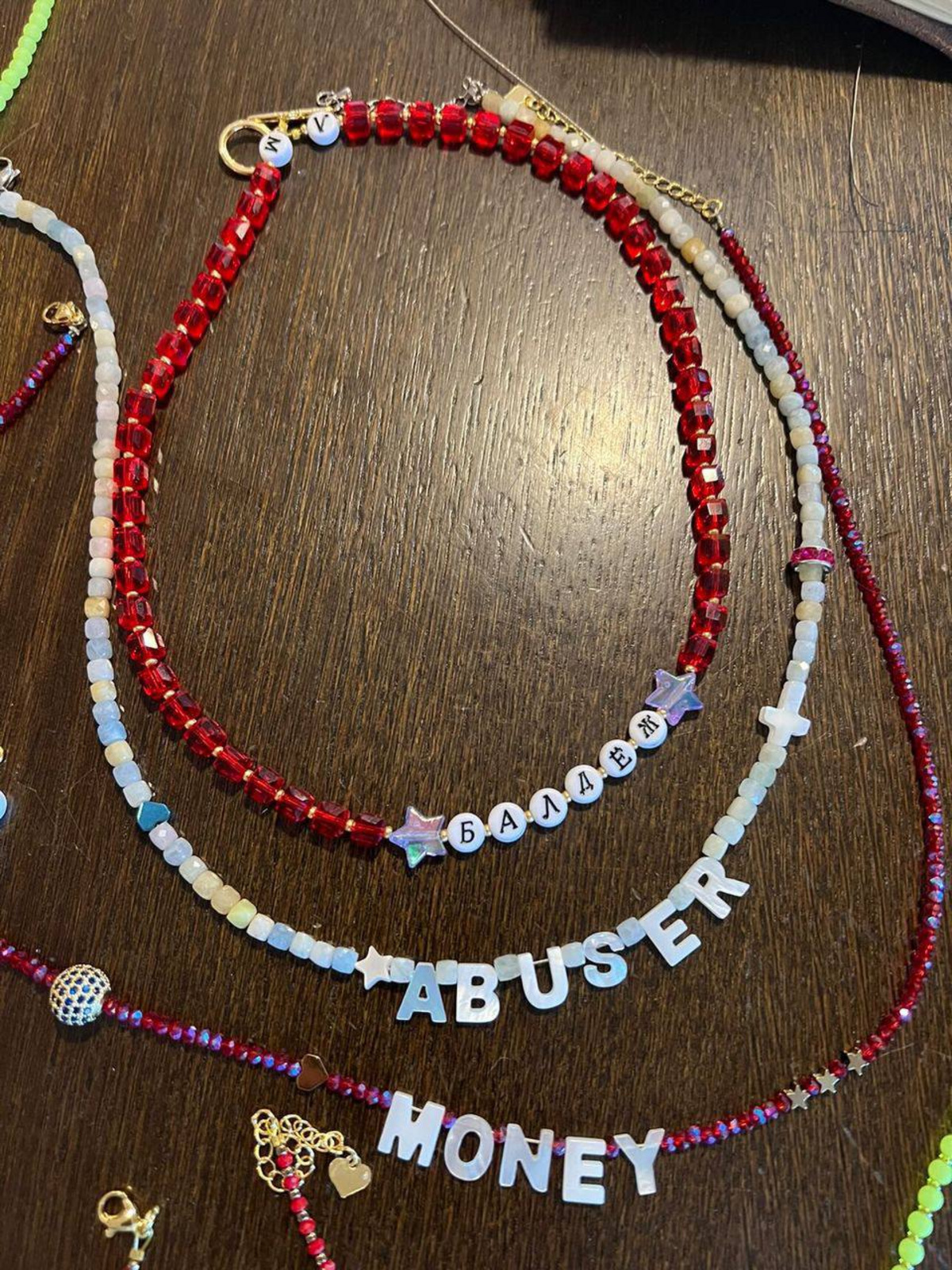 У девушки есть украшения как с матом, так и обычные, с модными и мотивирующими словами. Из-за переезда в Москву Екатерина поставила производство на стоп, однако планирует вернуться к этому делу уже в ближайшие дни. По ее словам, это очень медитативный процесс, который успокаивает.
