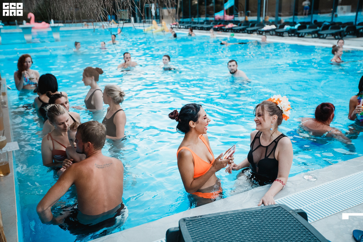 В термах VODA в Челябинской области купальный сезон тоже длится круглый год. Гостям на выбор предлагают два бассейна — крытый и открытый. Одним из главных плюсов является то, что вам не придется ждать выходных и тратить несколько часов на дорогу до ближайшего водоема — стоит лишь вызвать такси и уже через 20 минут наслаждаться прохладной водой. Пока вы отдыхаете, ваша кожа активно насыщается полезными минералами, которые поступают в бассейн из глубинной скважины.