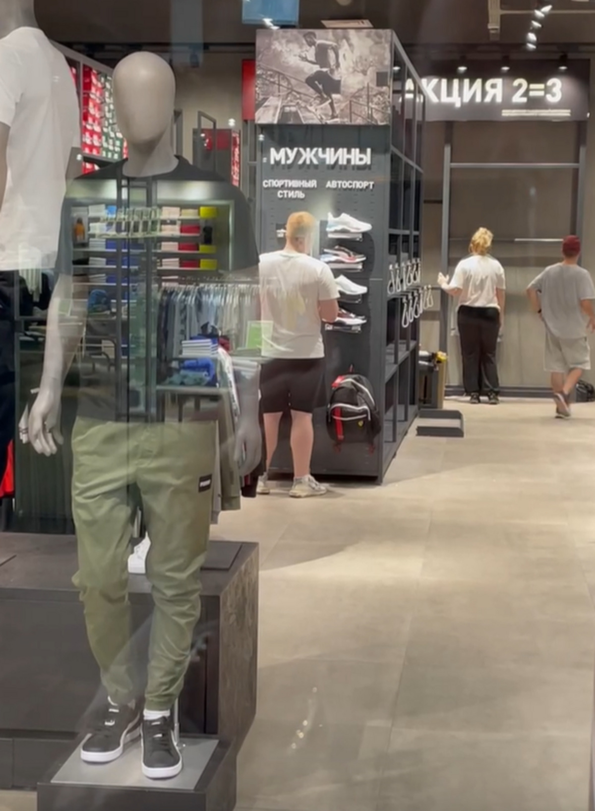 Сейчас команда сети активно готовиться к открытию. На стеллажах появляется все больше товара, а полки с кроссовками полностью заполнены.