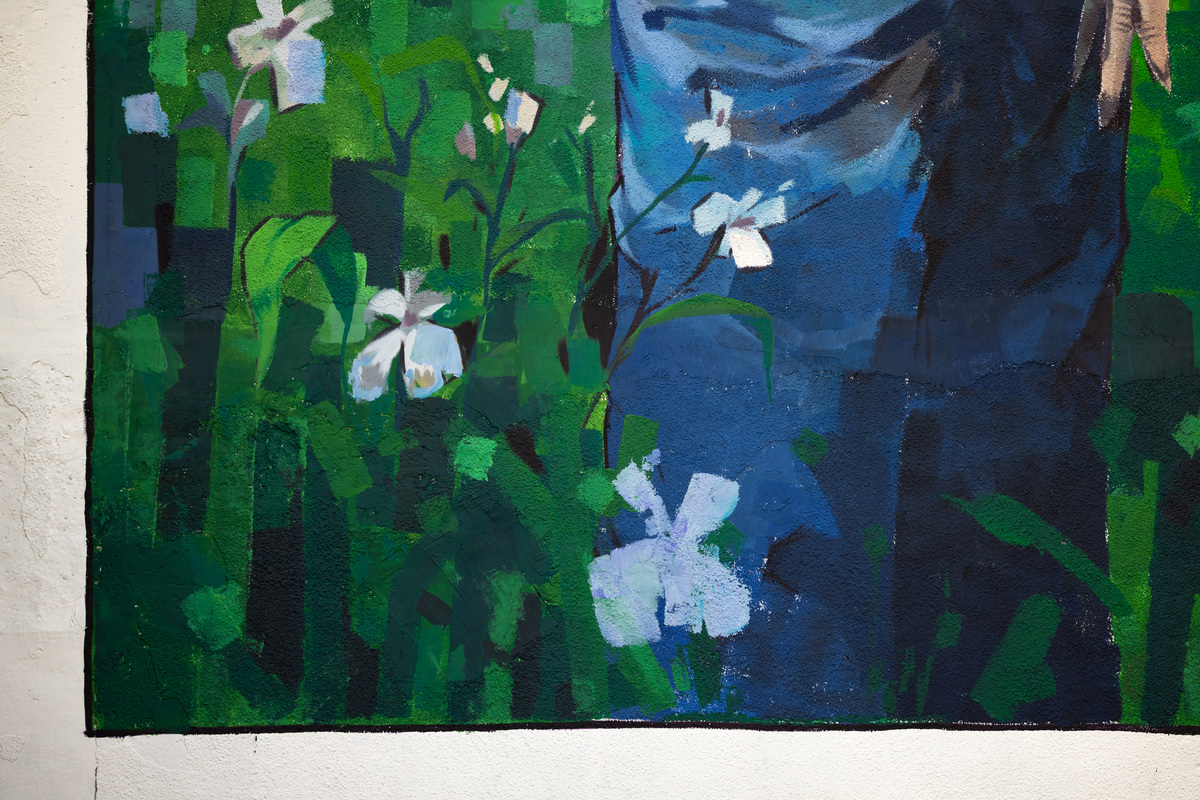 Работа выполнена в живописной манере: образы и окружение в картине состоят из крупных мазков. Теплые оттенки зеленого и желтого передают атмосферу луга, залитого утренним солнцем. Арт-объект можно найти на Седова, 21.