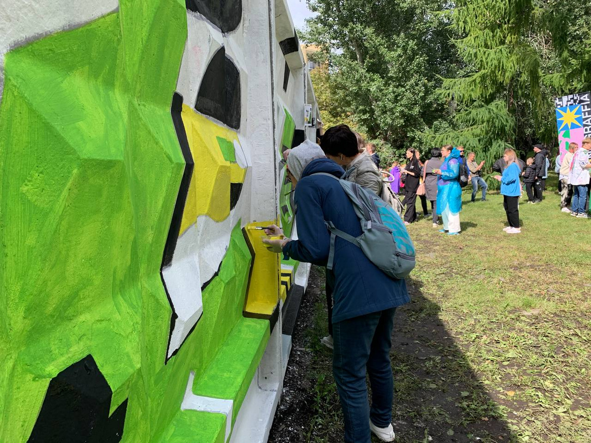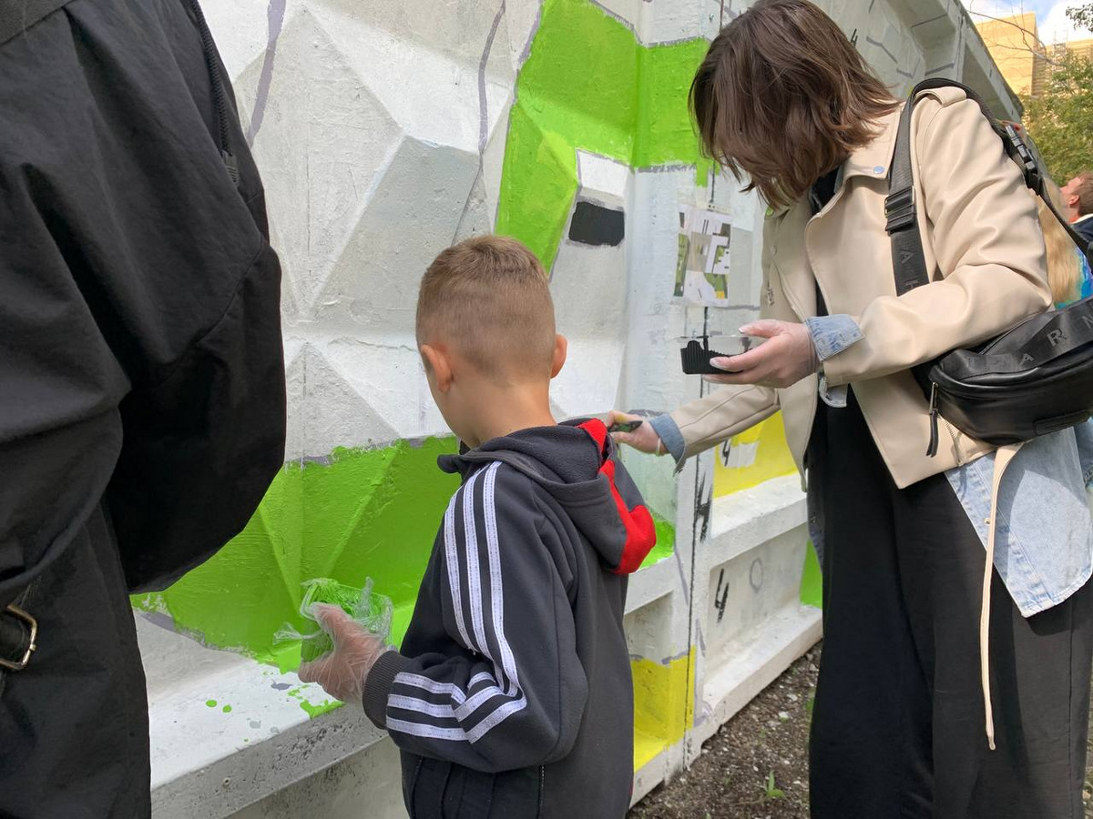 Участие в проекте приняло более 50 человек. Порисовать пришли как самые маленькие жители Екатеринбурга, так и пенсионеры. За три часа еще недавно серая стена превратилась в произведение искусства.