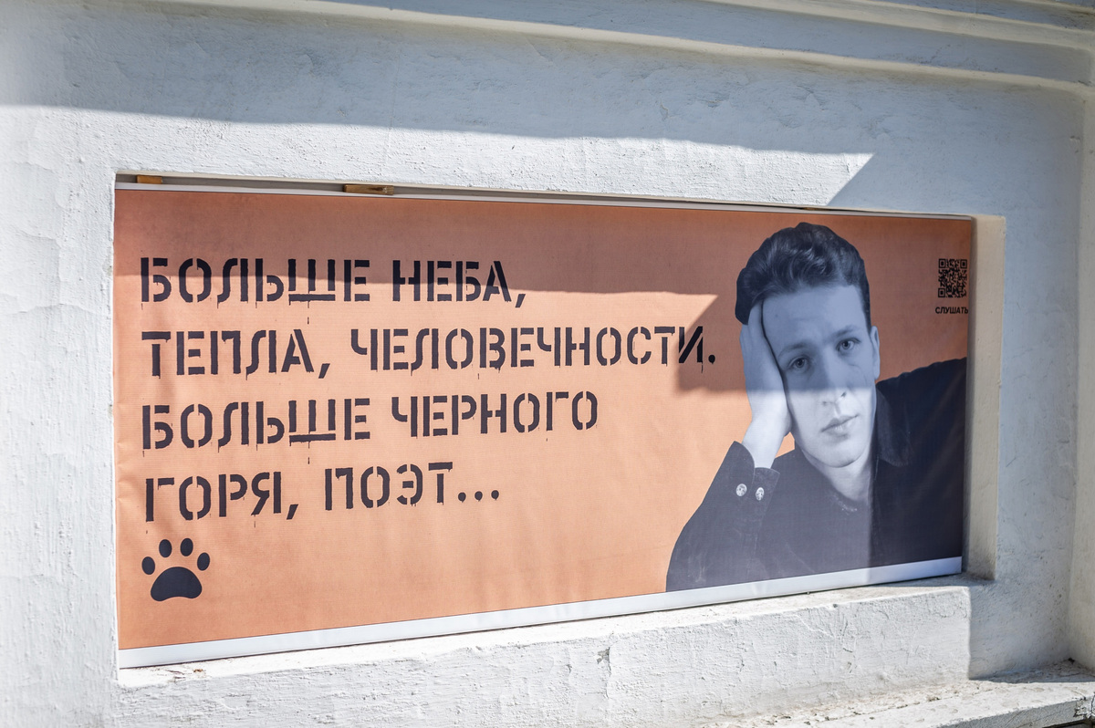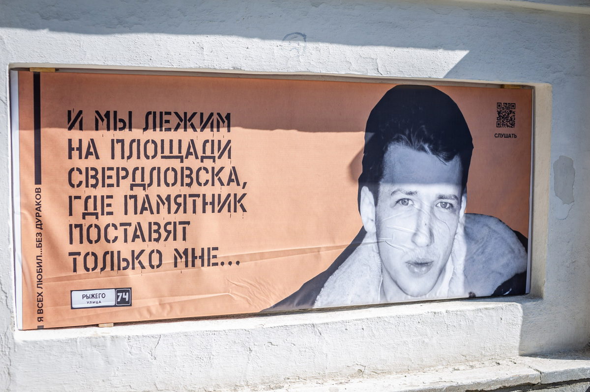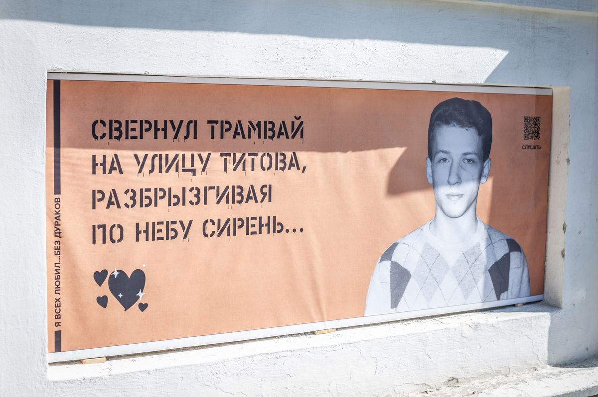 Всего в проект по улице Пролетарской вошло 13 плакатов с отрывками из стихов и фотографиями Бориса Рыжего. Кроме того, на каждом баннере есть QR-код, по которым можно перейти и послушать произведения поэта в озвучке актера «Коляда-театра» Антона Макушина.