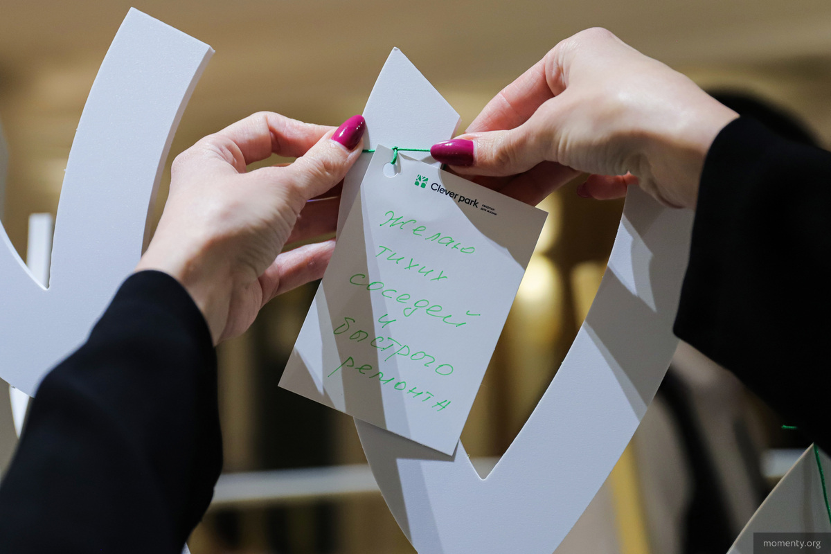 Все предусмотрено и продуманно. Перед официальной частью, новые резиденты квартала могли оставить пожелания себе или соседям на дереве добрых пожеланий, запечатлеть радостный момент у интерактивной фотозоны, а также получить небольшой подарок от Clever park — денежное дерево, как символ счастливой и благополучной жизни на новом месте. Перед началом официальной части в зале была полная посадка, вечер открыл генеральный директор Acons Development Алексей Обрезков.
