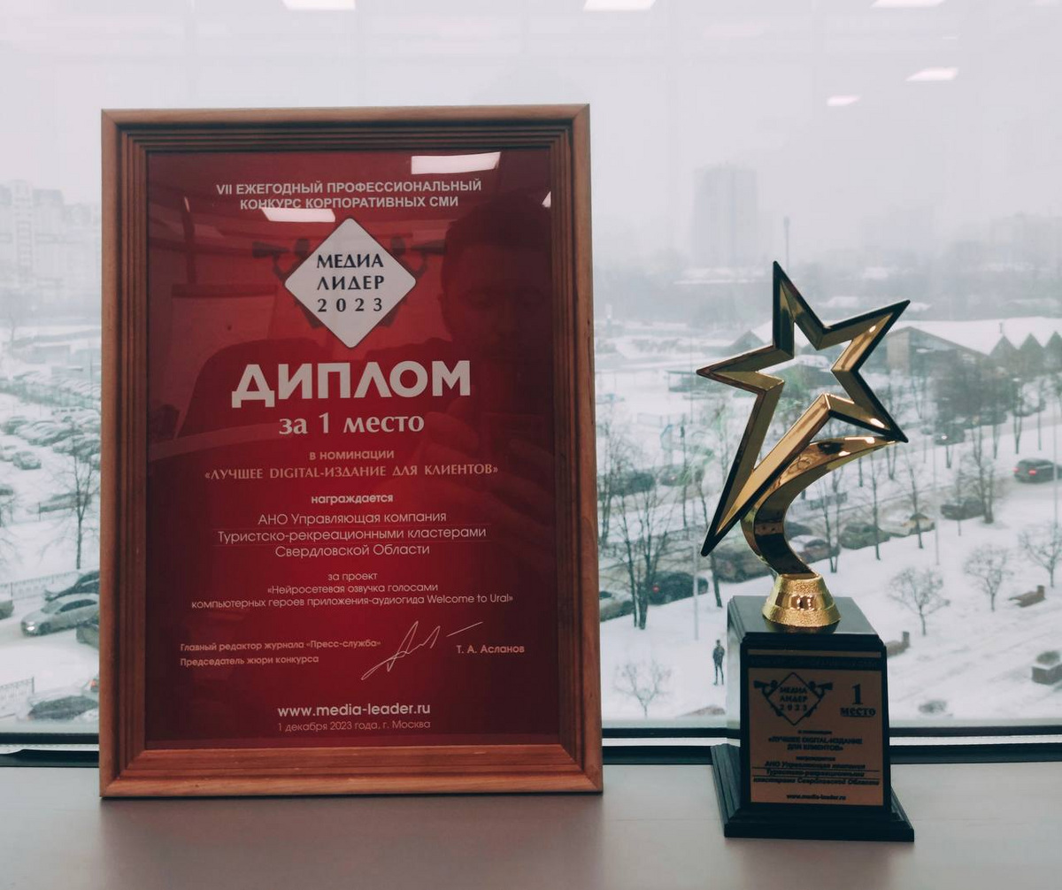 В Свердловской области продолжается активная популяризация регионального туризма, в том числе за счет современных решений. Так, на Всероссийском конкурсе корпоративных СМИ «Медиалидер-2023» команда Управляющей компании туркластерами региона заняла первое место. Уральскому проекту «Нейросетевая озвучка голосами компьютерных героев приложения-аудиогида Welcome to Ural» удалось стать лучшим среди 443 конкурсантов.