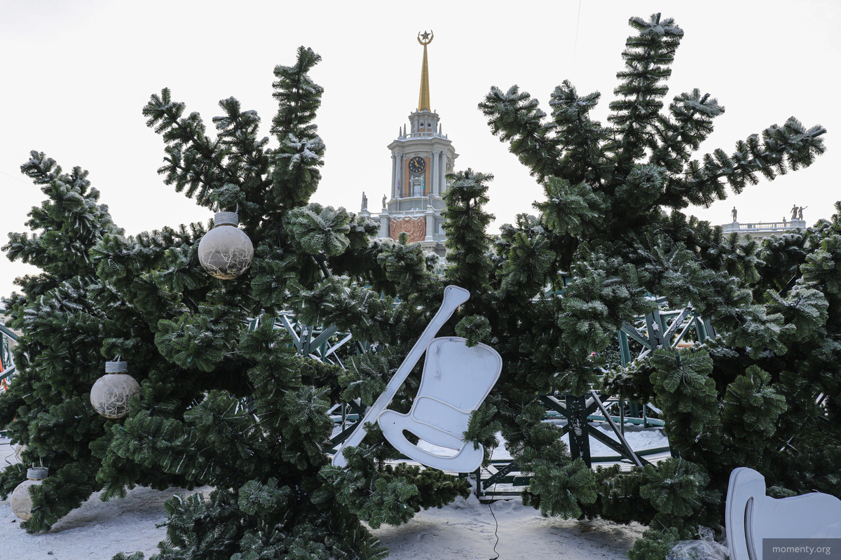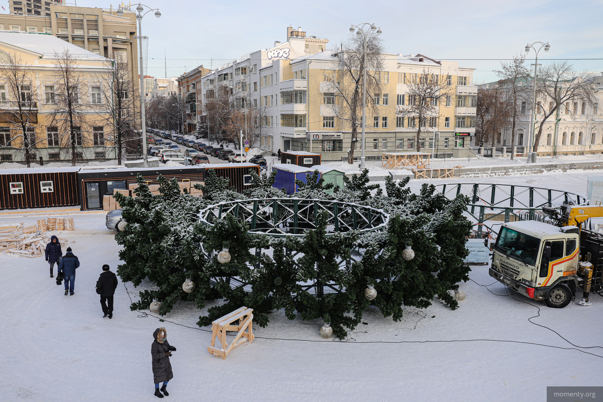 — Ель у нас в этом году новая. Раньше это были разные варианты: светодиодная конусная ель, живые ели, был такой опыт у администрации города и подрядчика городка. В этом году это искусственная ель, но она очень похожа на живую. Это новая елка высотой 30 метров и диаметром 12 метров, — рассказала «Моментам» заместитель начальника Управления культуры Екатеринбурга Елена Соколова.