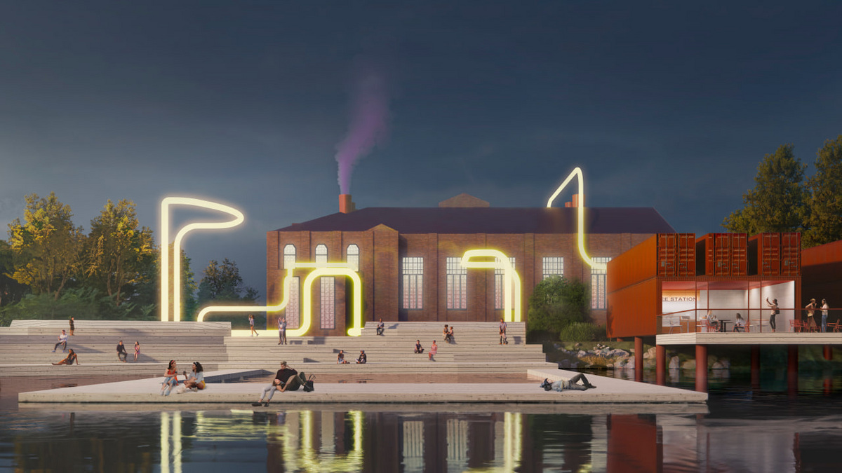 Питерское архитектурное бюро тоже создало решение с отсылкой на заводское прошлое и связь с природой. Проектом предусмотрены четыре опорных точки, где сконцентрируется все активности. Одним из них станет центр мультимедийного искусства в здании бывшего ГЭС.