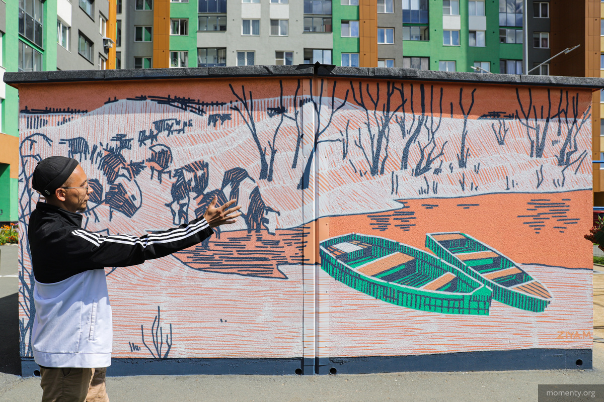 Художник из Уфы Мансур Зияев внес свой вклад в творческий облик Академического района. Креатор создал серию четырех стрит-арт работ под названием «Что делает нас людьми» — на четырех будках на проспекте Академика Сахарова появились образы, напоминающие о деревенской жизни. Этими работами Мансур стремился придать новому спальному району города дополнительную атмосферу жизни и уюта.