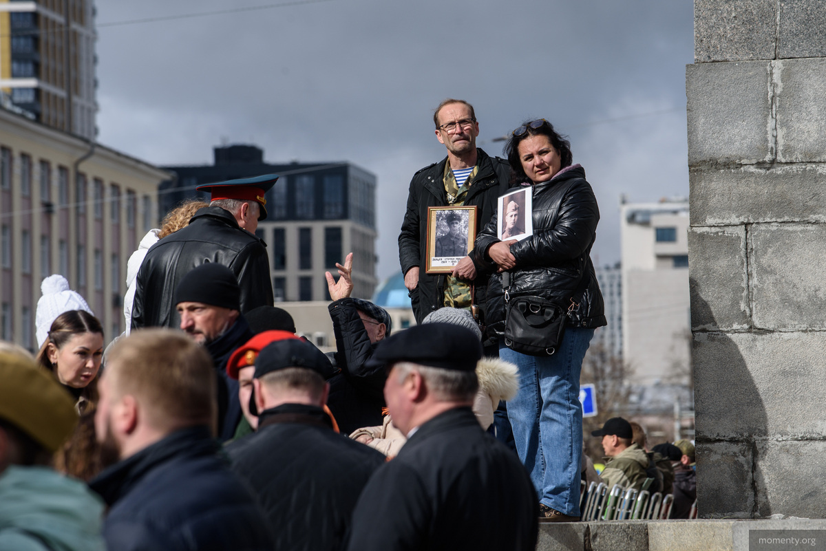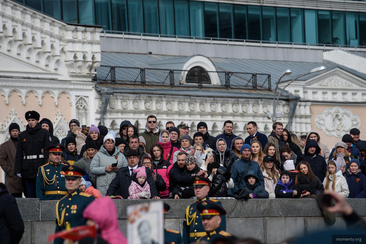 Кто-то из зрителей принес с собой портреты своих родственников, участвовавших в Великой Отечественной войне. Акцию «Бессмертный полк» в этом году опять отменили, переведя в онлайн-формат.
