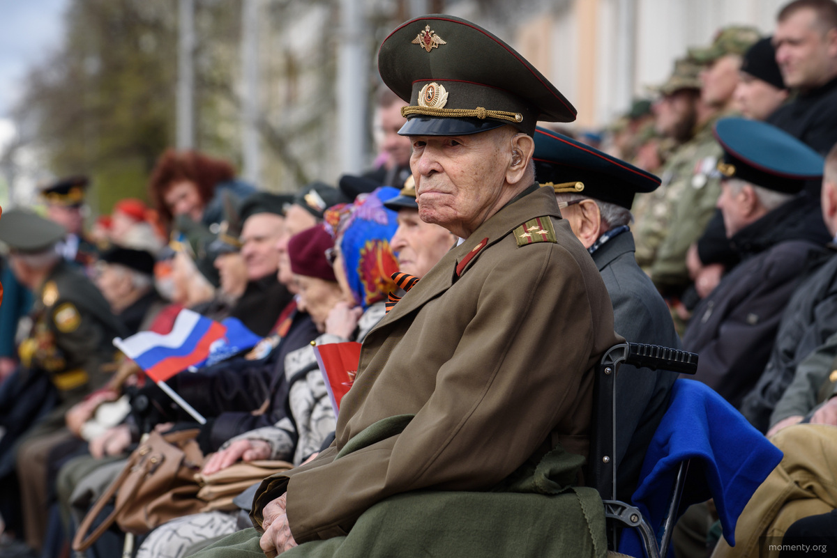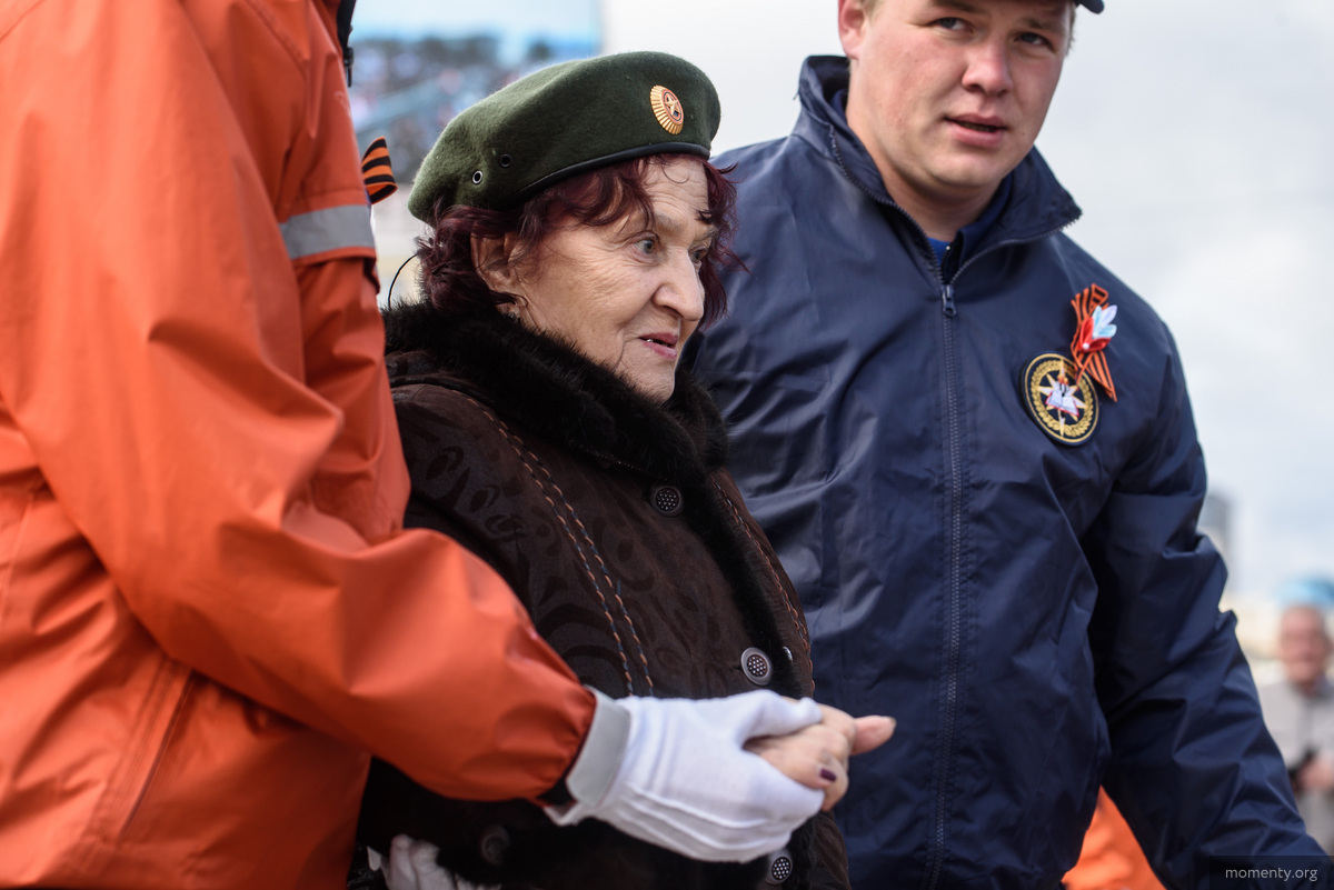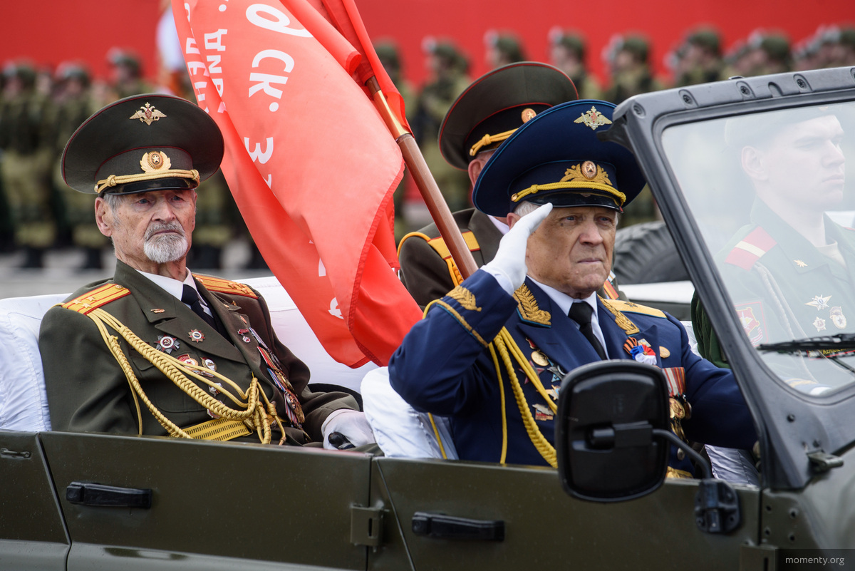 Главными гостями праздника, конечно, были ветераны. Они первыми прибыли на Площадь 1905 года и в начале парада объехали строй. После этого на Площади 1905 года объявили минуту молчания. Копию знамени Победы провез ветеран ВОВ Дмитрий Суворов, которому в этом году исполнилось 98 лет.