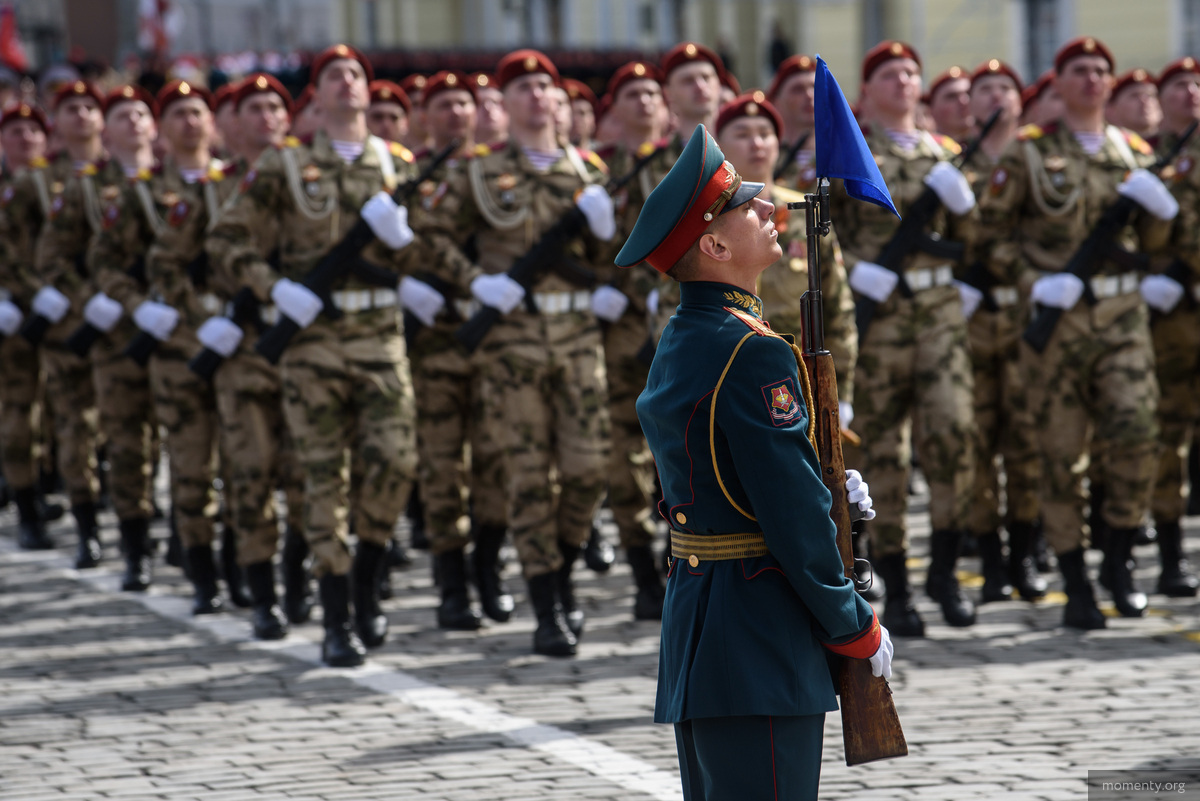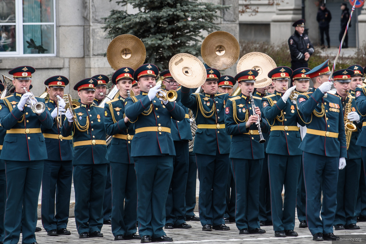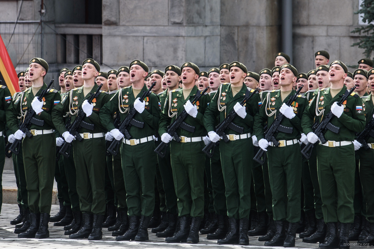 Открыли парад барабанщики Суворовского военного училища. За ними следовали представители авиационного объединения Воздушно-космических сил России, военнослужащие мотострелкового, железнодорожного соединений и подразделения Росгвардии.