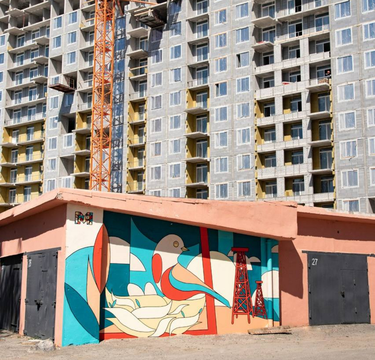 На Уралмаше появилось новое граффити, которое должно напоминать жителям района о важности семейных ценностей. Его созданием занималась креативная команда STENKA — художники проекта работают по всему миру и переосмысливают городское пространство.