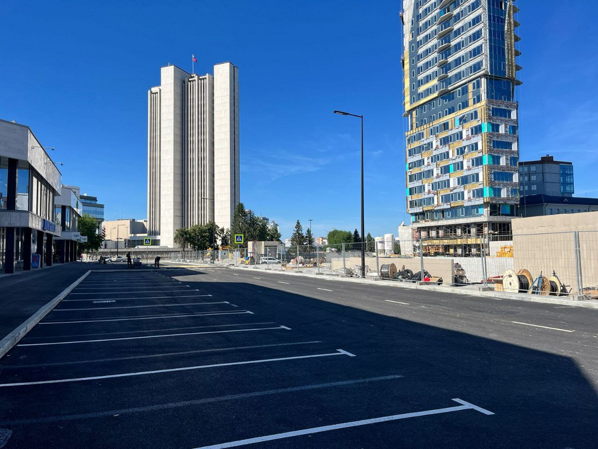 Первый этап преображения территории от улицы Антона Валека до улицы Февральской Революции завершился буквально на днях. В 2022 году движение по этому участку дороги было закрыто. За это время были проведены работы по переносу инженерных сетей и удалению старых коммуникаций, построен подземный паркинг на 200 машиномест, а также заменено покрытие дороги.