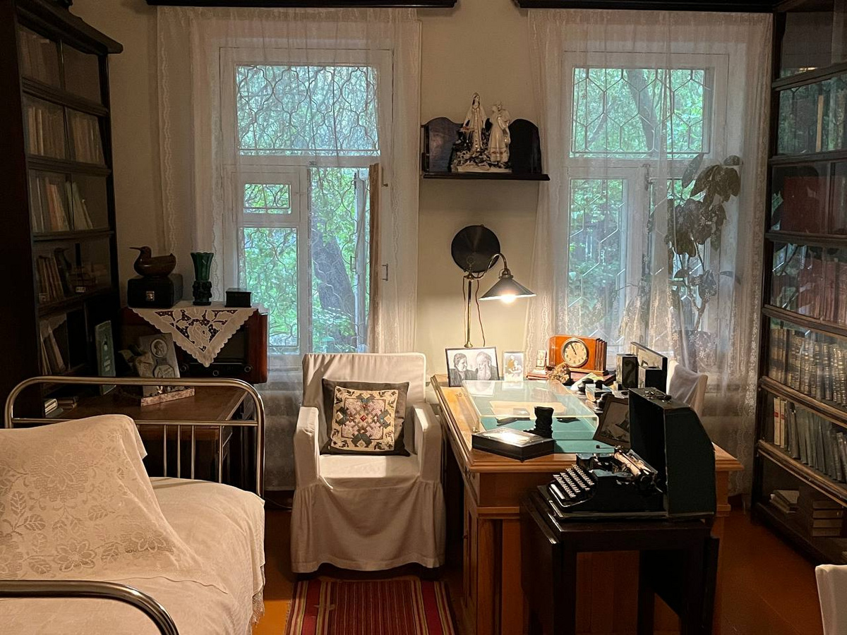 История подходит к своему логическому завершению в Екатеринбурге — финальной точкой стал дом писателя, где он творил. Прямо над рабочим столом Бажова художники создали милую инсталляцию «Шепот», отсылающую к сказам автора: сотканные из воспоминаний и писем «узелки» превратились в единое кружевное полотно.