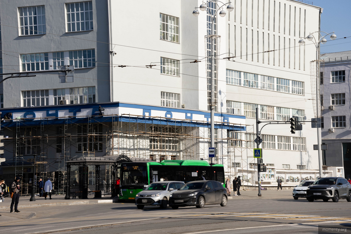 В Екатеринбурге завершился важный этап реставрации здания Главпочтамта на проспекте Ленина. На фасаде исторического Дома связи вновь появилась синяя надпись «Почта», восстановленная в соответствии с оригинальным проектом 1934 года. Она размещена над главным входом и со стороны сквера Попова.