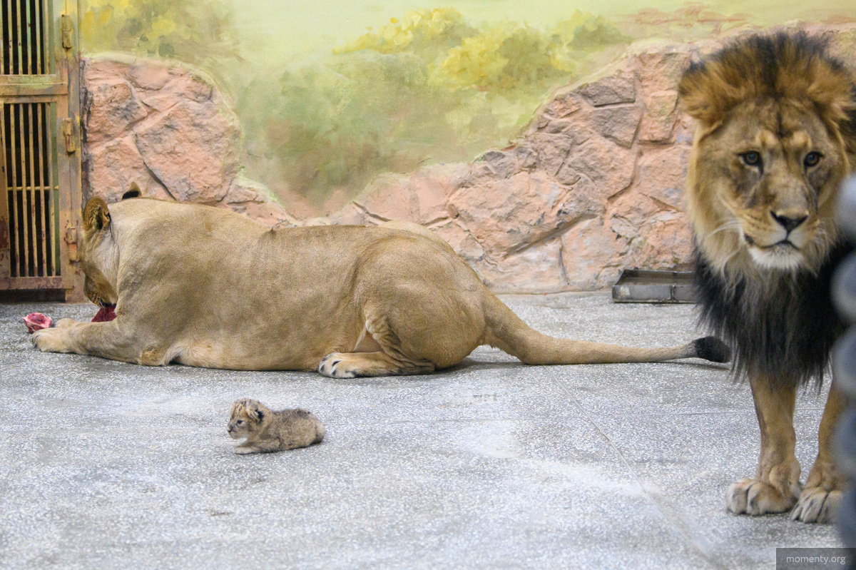 В зоопарке Екатеринбурга случилось пополнение — там родился львенок. Малышу еще нет месяца, и на имеющихся кадрах видно, как он держится рядом с мамой-львицей.