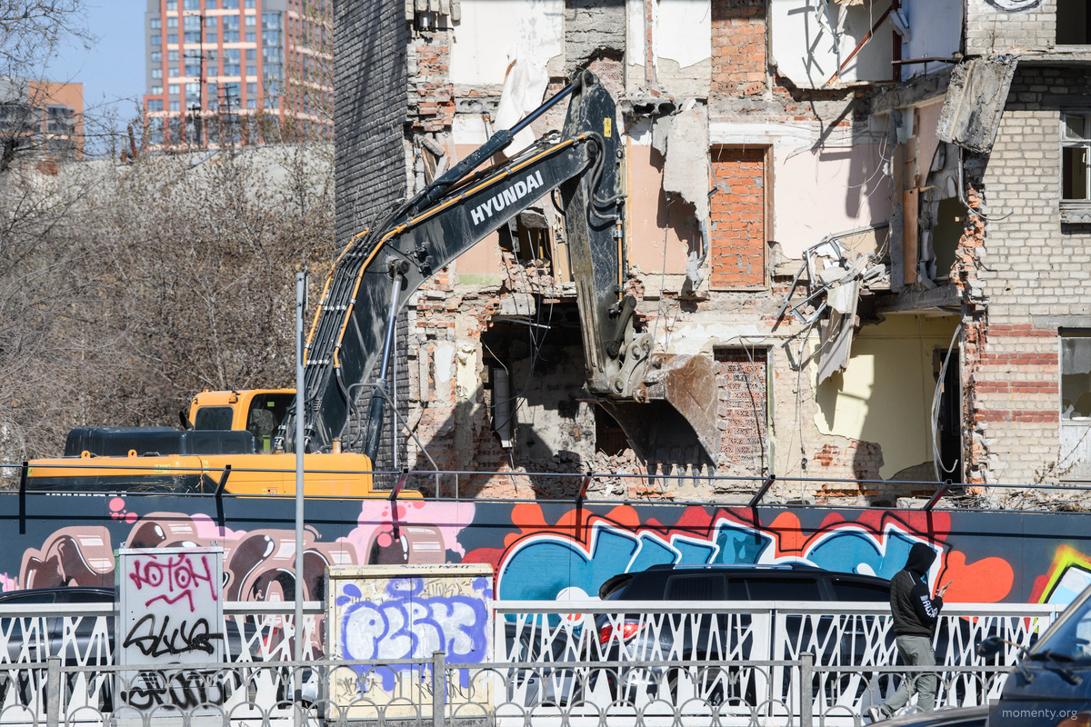 — Снос мы начали со стороны гаражей, формируя заезд внутрь здания. Из обломков создаем «подушку», по которой техника сможет подняться к верхним этажам. Дом будет обрушатся вовнутрь, после чего обломки вывезем на мусорный полигон. Битый кирпич не предназначен для вторичного использования, — рассказали «Моментам» в пресс-службе девелопера.