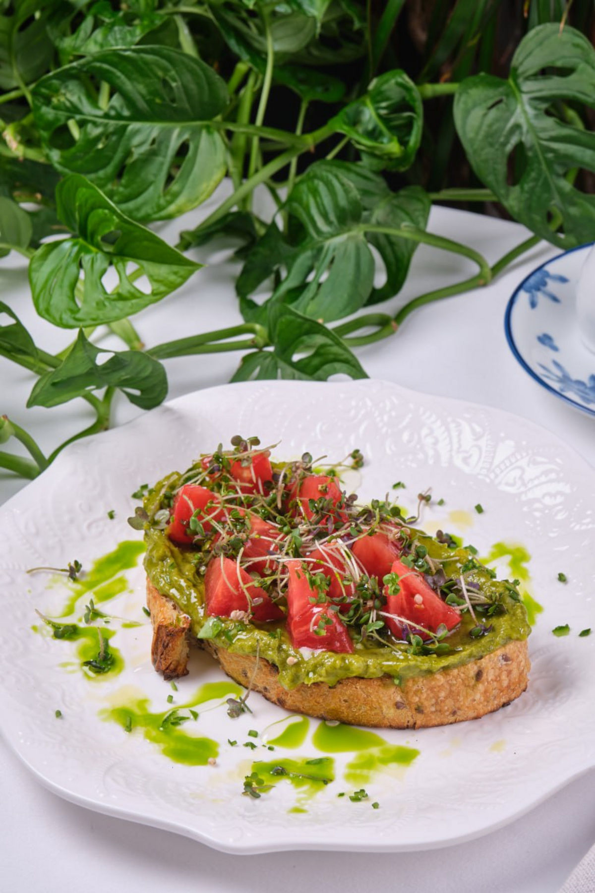 — Брускетта с гуакамоле и бальзамическими томатами.