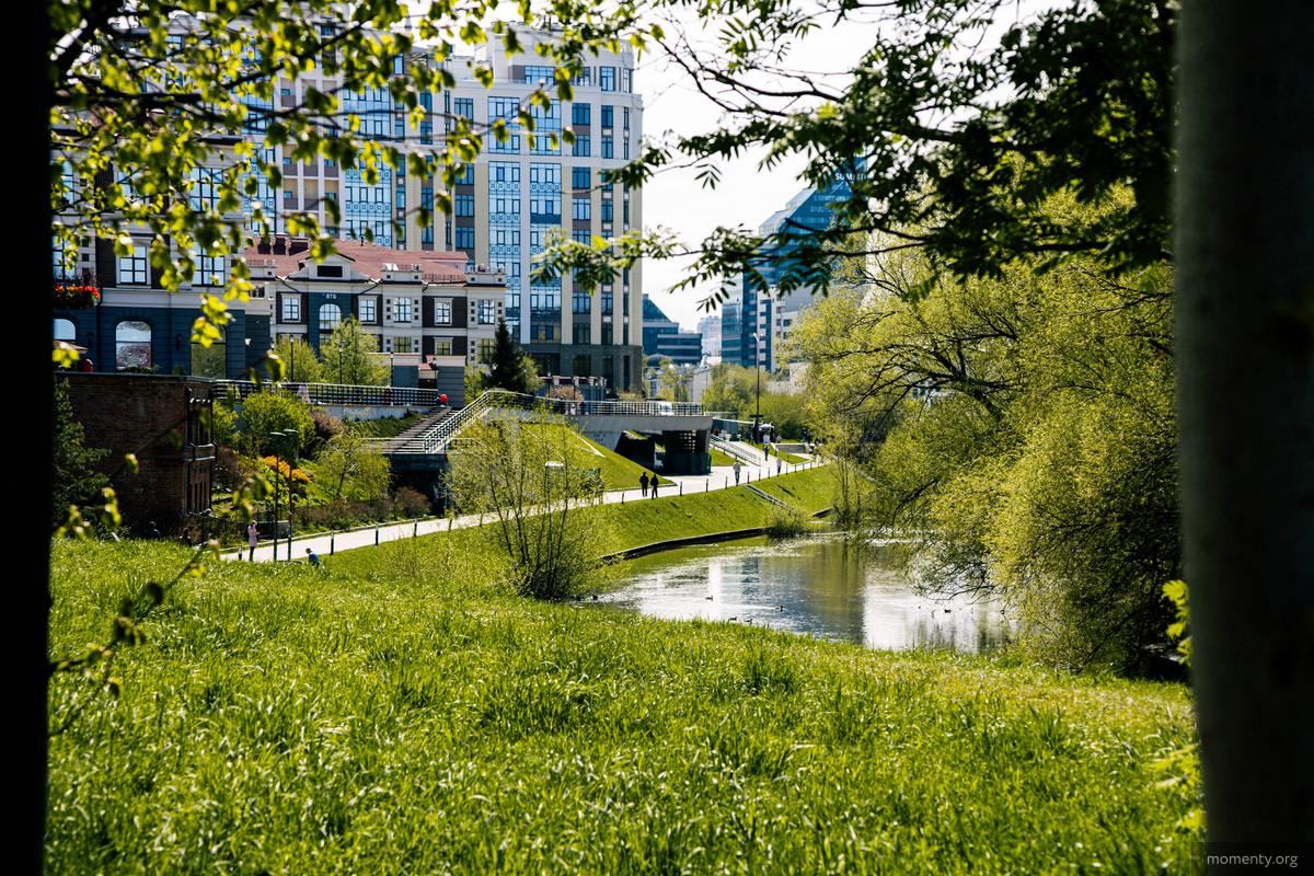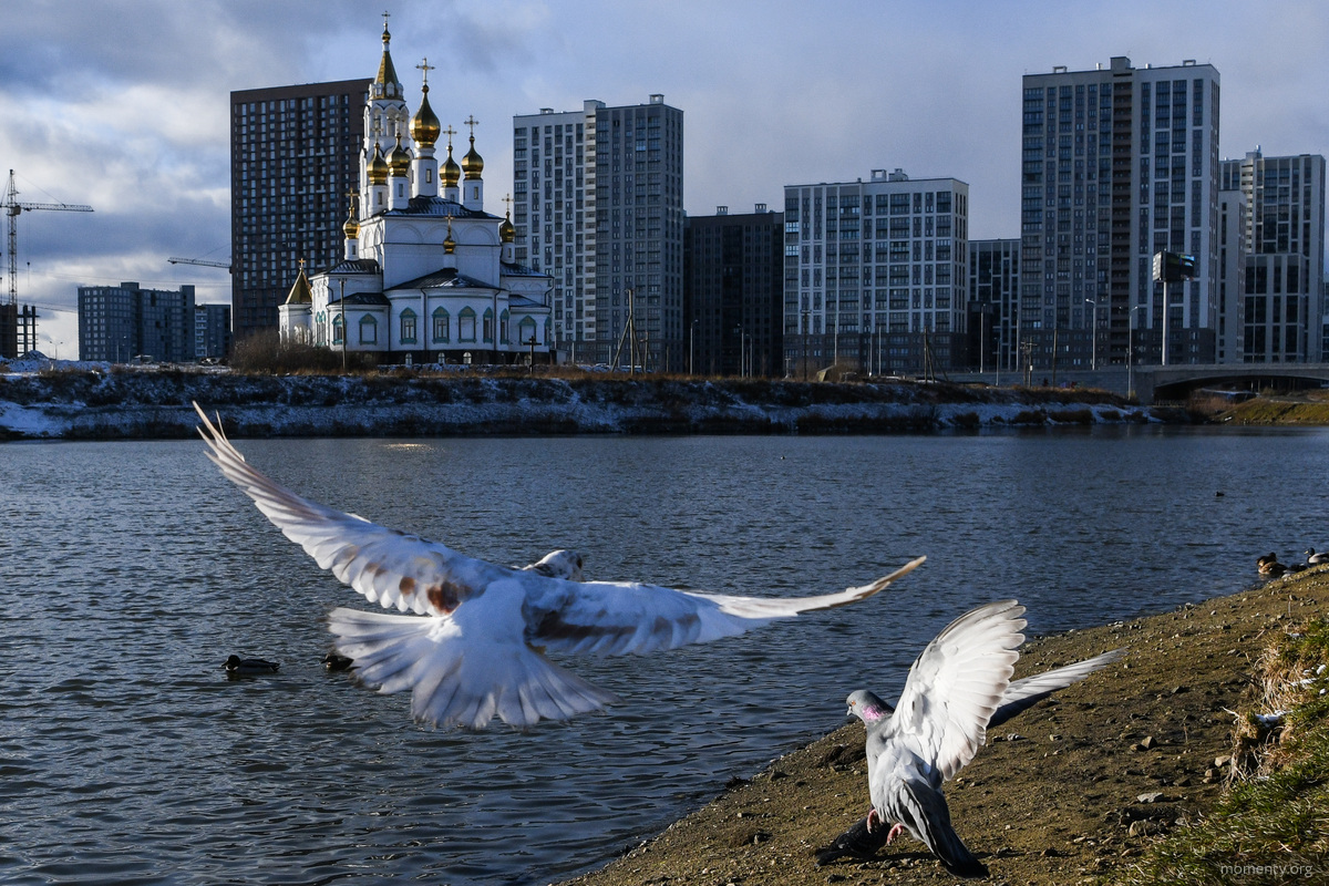 Может показаться банальным вариантом, однако обратите внимание не на основную часть, соседствующую с набережной, а на территорию Аллеи Любви. Там нет большого открытого пространства, из-за чего атмосфера становится более уютной. А совсем рядом известное здание «Русской медной компании», поэтому первые солнечные лучи будут отражаться не только от поверхности Исети, но и от его стен. Красивые кадры вам обеспечены.