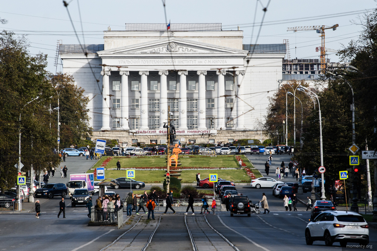 Если вам не хочется уезжать далеко от центра, то можно встретить рассвет возле главного корпуса УрФУ. Особенностью площади, находящейся напротив учебного заведения, стало как раз расположение — она на возвышенности, поэтому с нее открывается отличный вид на центр Екатеринбурга и проспект Ленина. Что немаловажно — пространство не загораживают высотки, поэтому хороший обзор на розовеющее от первых лучей солнца небо вам обеспечен.