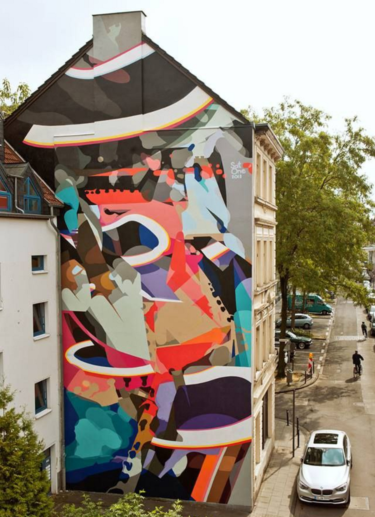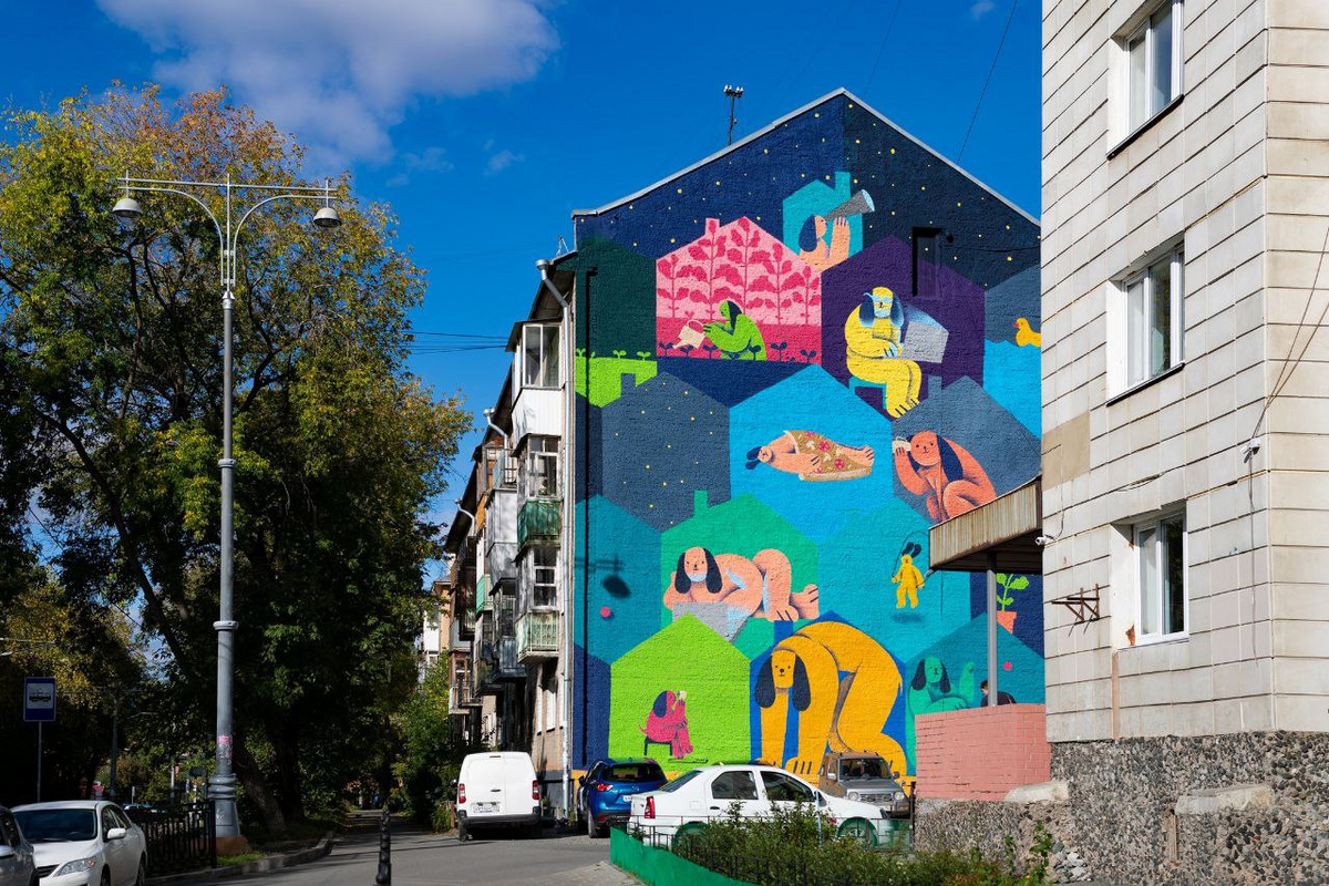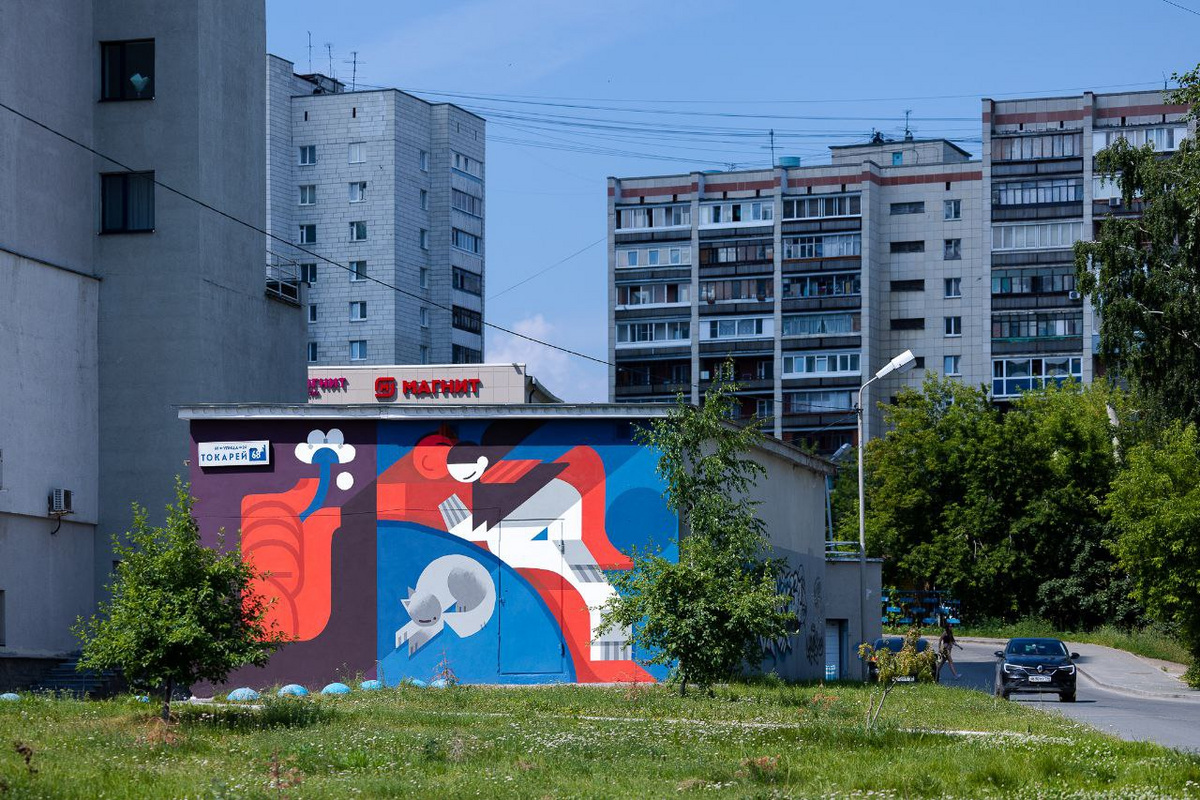 Для того, чтобы городские стены начали обрастать новыми смыслами, в Екатеринбург пригласили художников из других стран. Среди них Claude BLO RICCI из Франции (арт-объект на Советской, 24А), Hazul из Португалии, LPVADA из Швейцарии (изображение на Первомайской, 103) и SATONE из Германии (мурал на Первомайской, 59).