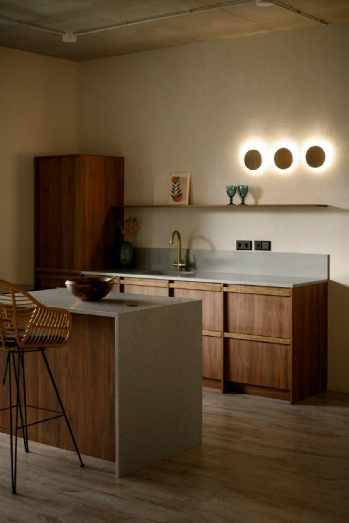 Пространство оформлено под эксклюзивный дизайнерский стиль. Такая минималистичная кухня хорошо подойдет для съемок кулинарных шоу. В этой зоне фотографии получаются уютными и домашними. Локацию можно использовать как для семейной, так для тематической фотосессий.