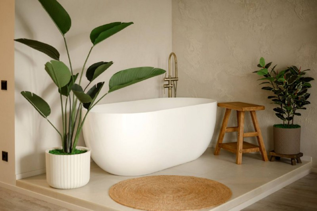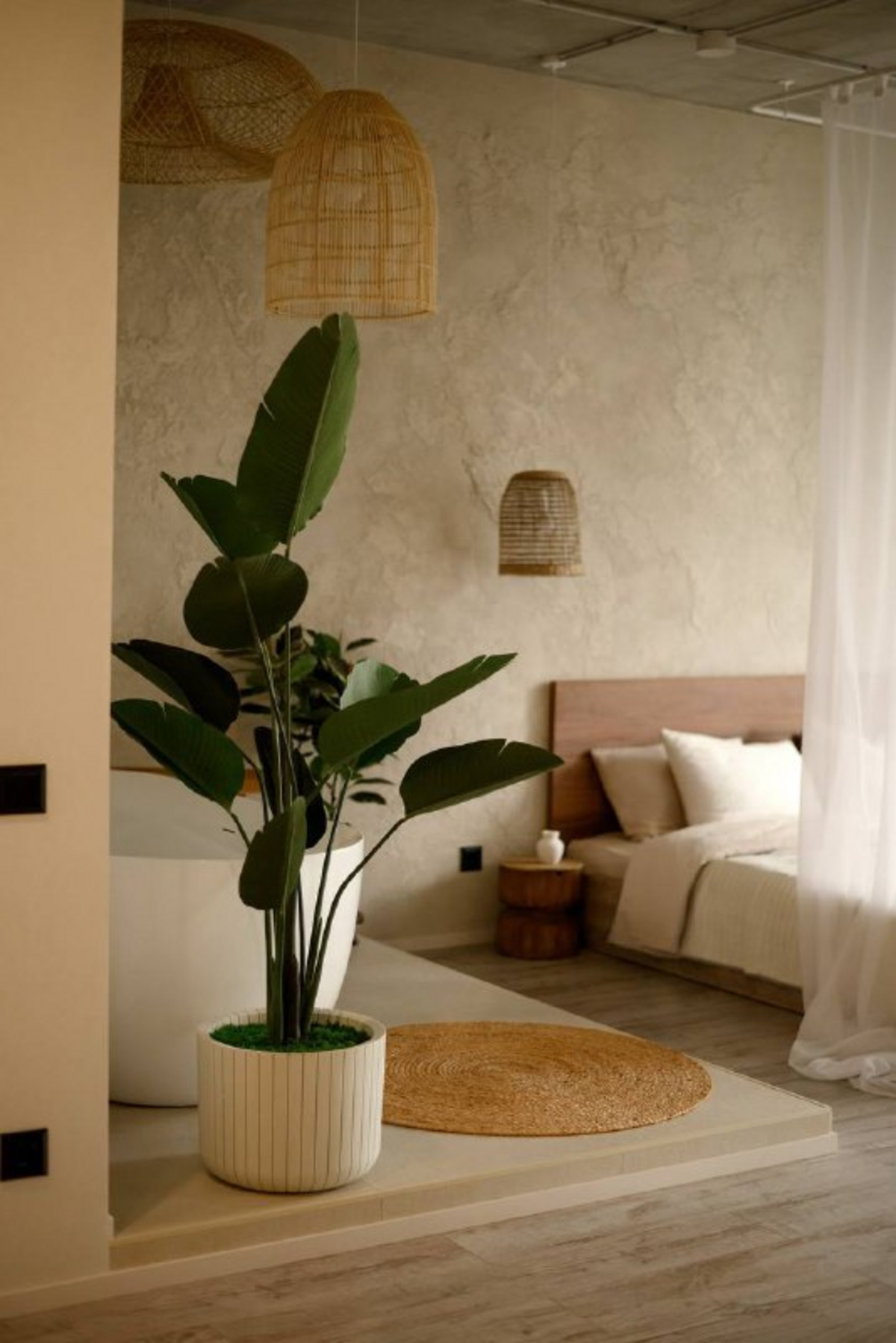 Экзотическая ванная комната, украшенная растениями, тоже заслуживает отдельного внимания. Если вы всегда мечтали о фотосессии в стиле Pinterest, то это подходящее место для реализации ваших креативных идей. Приготовьтесь к восхищенным взглядам и множеству лайков. В такой локации это гарантировано.