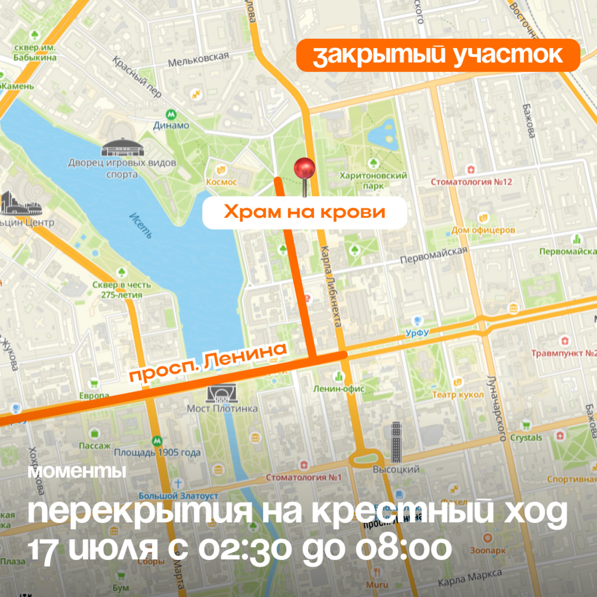 После того как крестный ход пройдет, движение будет восстановлено. Помимо ограничений на проезд, будет запрещено парковаться на Царской с 00:10 16 июля до 04:00 17 июля.
