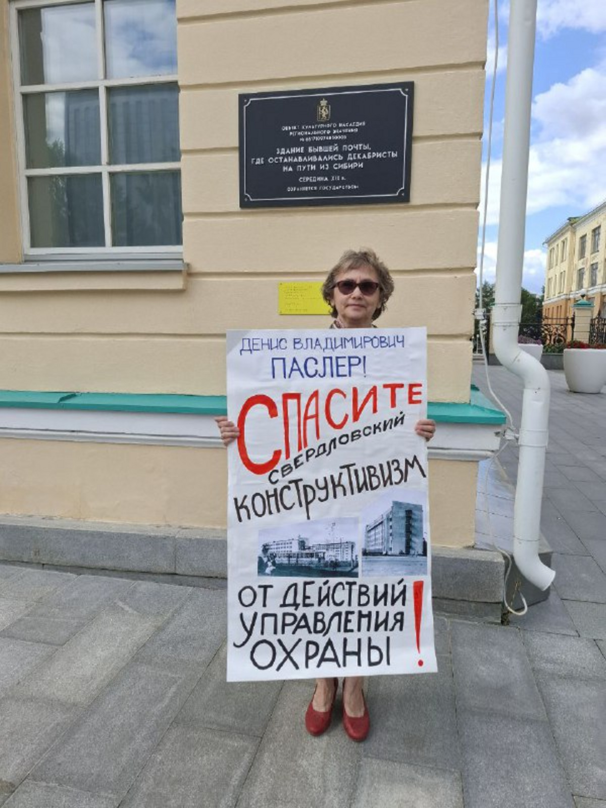— Я жительница города Екатеринбурга, пенсионерка, в прошлом — архитектор. Общий стаж моей работы составляет 48 лет. И, не постесняюсь этого сказать, я лауреат премии Татищева и де Геннина. Поэтому считаю, что не менее эксперта Николаевой разбираюсь в архитектуре. Многие коллеги, по моему мнению, поддержат меня в том, что это здание должно быть сохранено, — прокомментировала одна из участниц пикета Галина Алексеева.