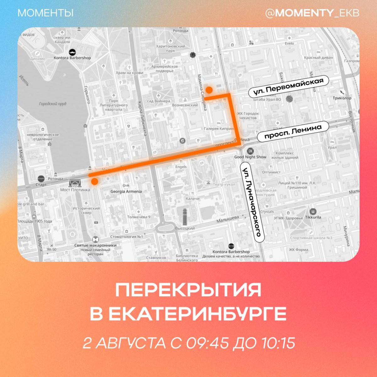 Ограничение транспортного движения продлится с 09:45 до 10:15 2 августа. Проезд будет закрыт от памятника Татищеву и де Геннину до мемориала «Черный тюльпан». Маршруты общественного транспорта останутся неизменны.